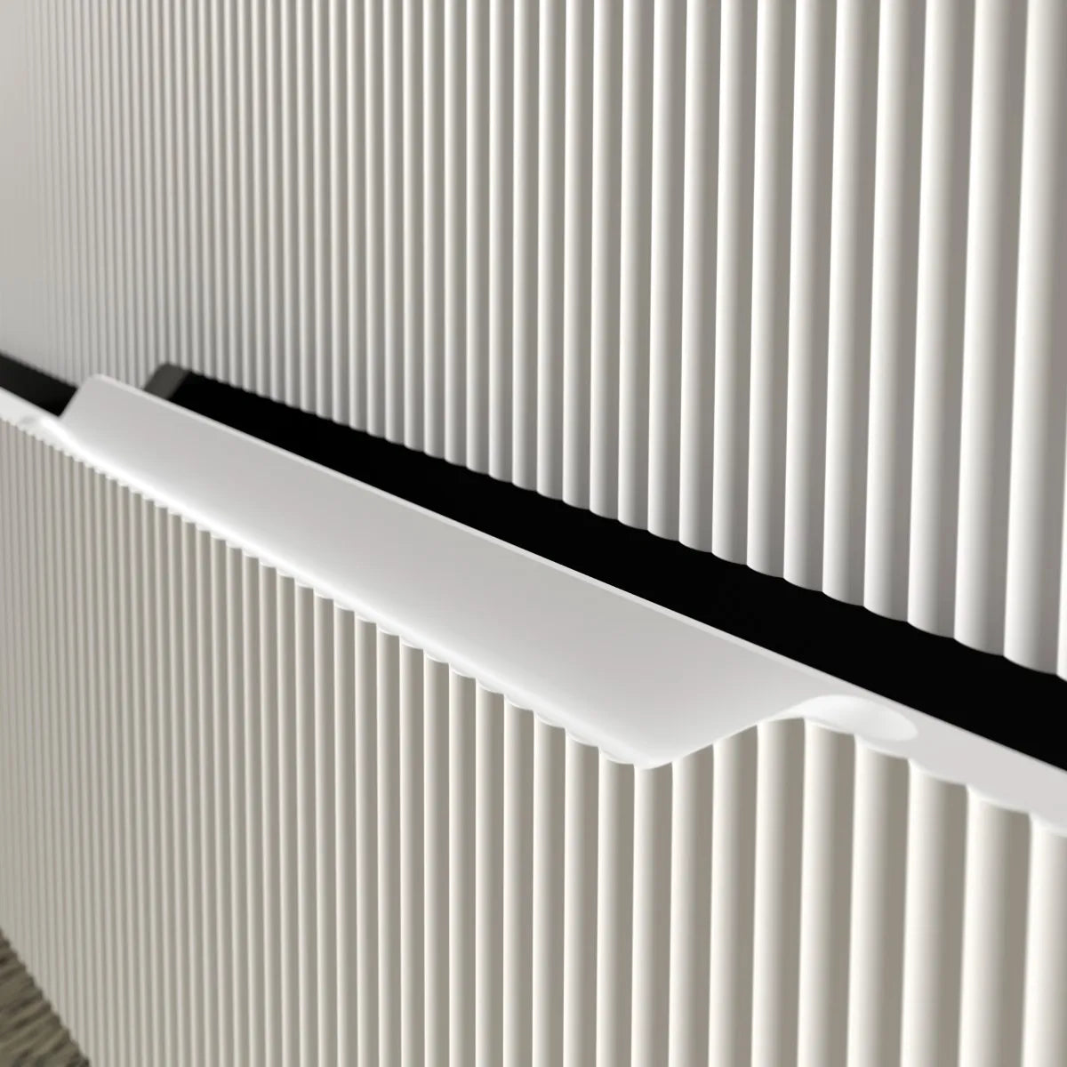 En av de mest framträdande designdetaljerna hos Tenfors Bambu är den smart utformade greppkanten på lådorna. Greppkanten är diskret inbäddad i lådfrontens struktur, vilket ger en strömlinjeformad och stilren design samtidigt som den är lätt att greppa och använda. Detta är en genomtänkt detalj som inte bara ser bra ut utan även förenklar användningen av lådorna.