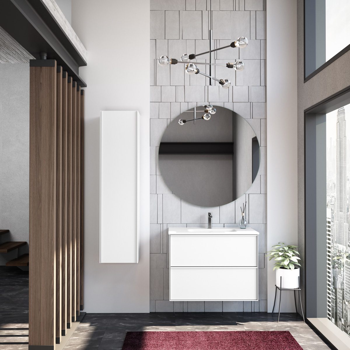 Högskåpen i serien mäter 35x140 cm och har ett djup på 35 cm, vilket gör dem perfekta för både små och stora badrum. De erbjuder rymliga hyllplan och mjukstängande dörrar, vilket ger praktisk och flexibel förvaring för handdukar och andra badrumstillbehör. Den dolda upphängningen ger en minimalistisk och svävande effekt, vilket underlättar rengöring och bidrar till en luftig känsla.
