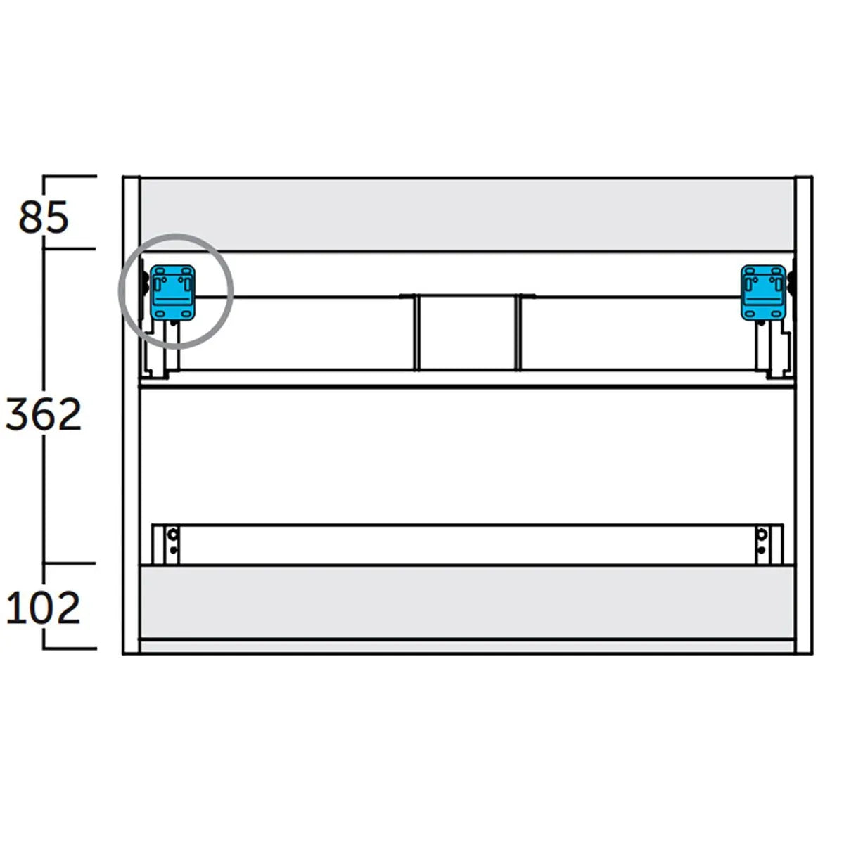 - Mjukstängande lådor: Lådorna är utrustade med GRASS-skenor och metallkanter för en tyst och jämn rörelse.