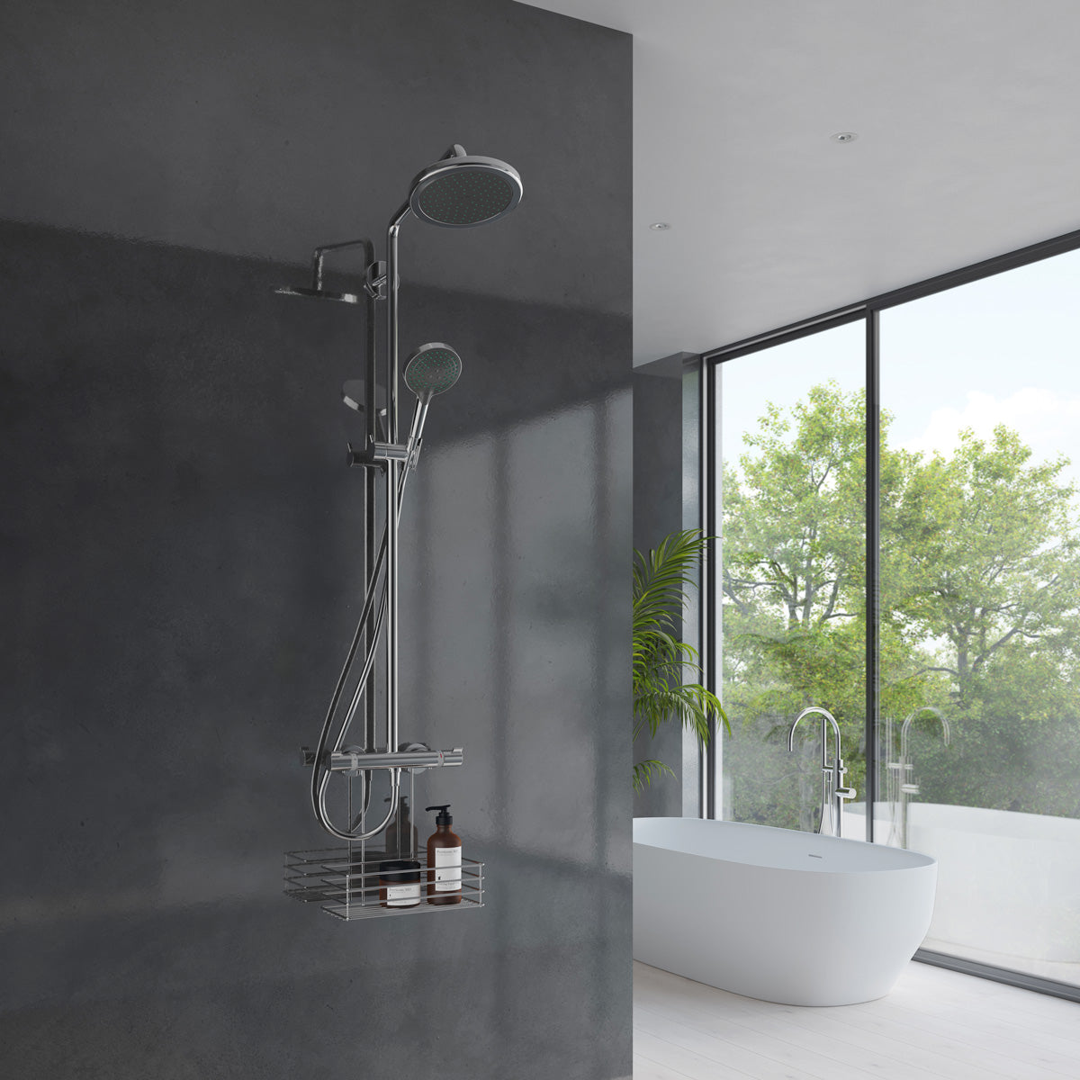 Korgen är tillverkad av högkvalitativt rostfritt stål, ett slitstarkt material som står emot fukt och rost. Fästena är gummerade för att skydda blandaren från repor och hålla korgen stadigt på plats. En perfekt duschkorg för det mindre badrummet eller för dig som vill ha en stilren och funktionell förvaring. Finns även som dubbel modell i både krom blank och svart matt för extra utrymme.