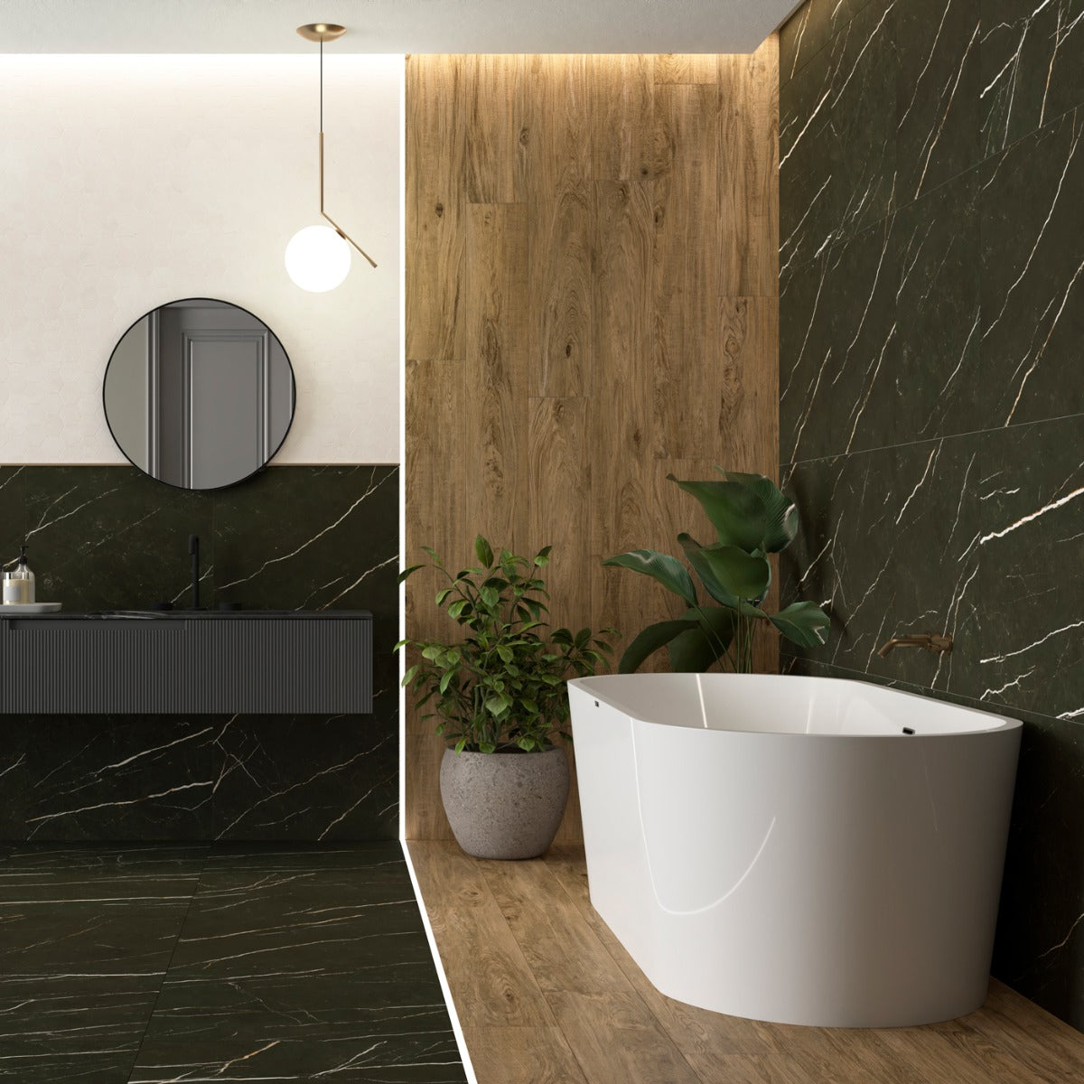 Med rektifierade kanter möjliggör Klinker Elite Black Marmor Matt användningen av smalare fogar, så tunna som 1 mm. Detta ger inte bara en modern och stilren estetik utan också en jämnare och mer enhetlig yta. Den smala fogningen ger också möjlighet att framhäva det eleganta mönstret och skapa en känsla av oavbruten kontinuitet.