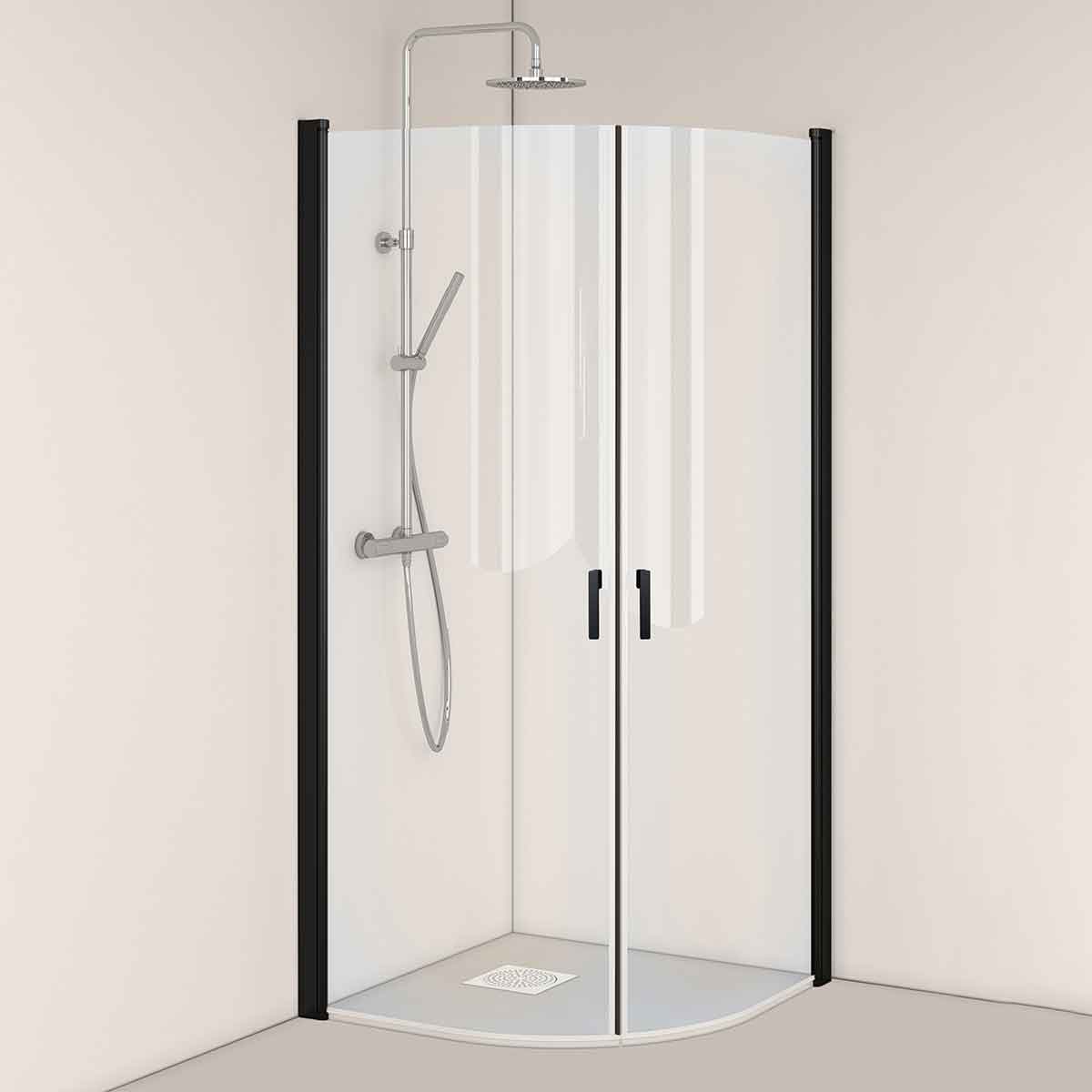 Duschhörn Hafa Igloo Pro Böjd 90x90 Klarglas Svart – Stilren design med generös duschyta