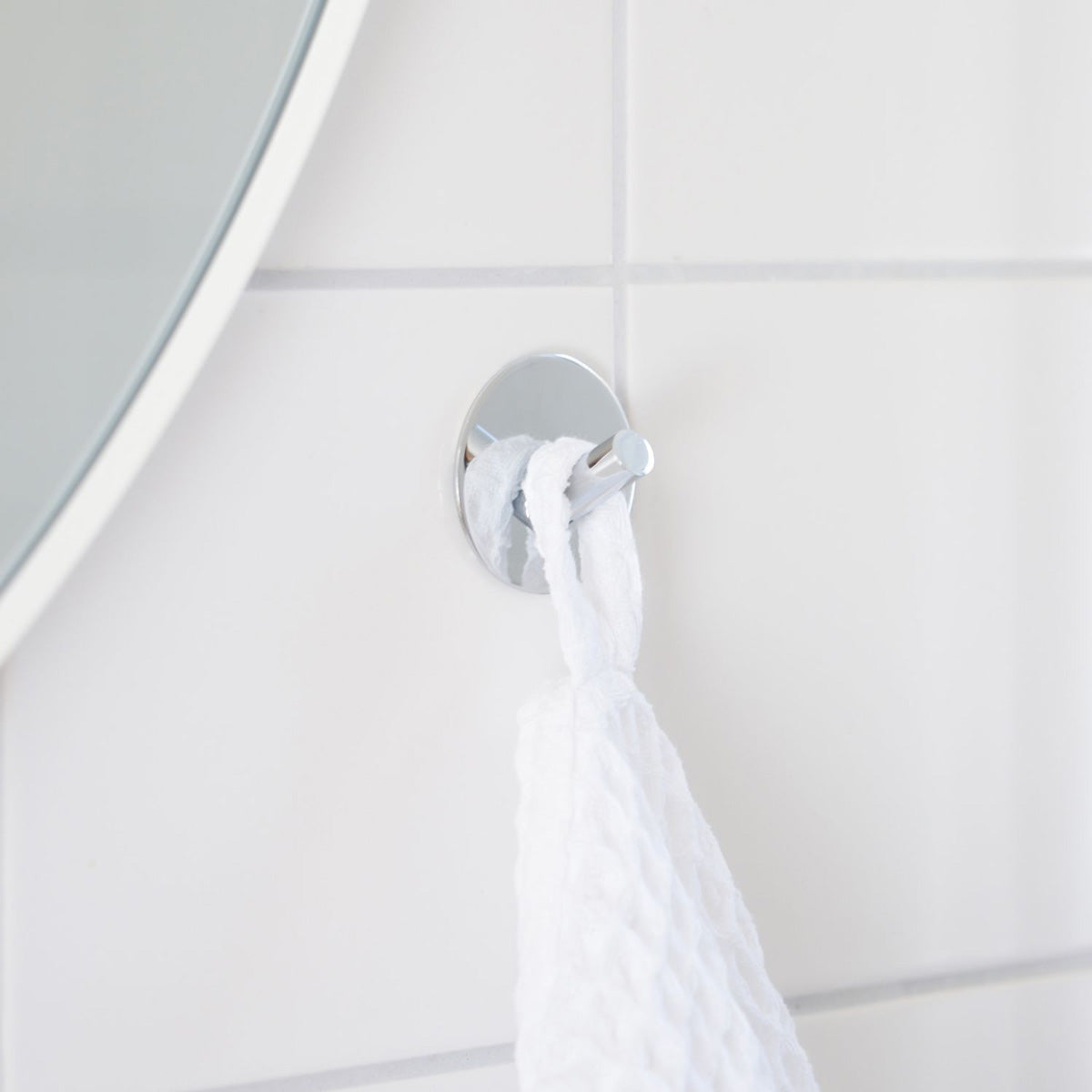 En självhäftande handdukskrok i förkromat rostfritt stål som kombinerar enkel montering med stilren design – perfekt för ett modernt och välordnat badrum.
