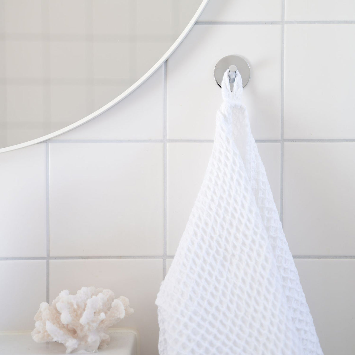 Kroken är tillverkad av rostfritt stål – ett slitstarkt och rostfritt material som tål badrummets fuktiga miljö. Tack vare den självhäftande 3M-tejpen monteras kroken snabbt och enkelt direkt på kakel eller klinker, utan skruvar och verktyg. En smidig och elegant lösning som förenar design, funktion och hållbarhet.