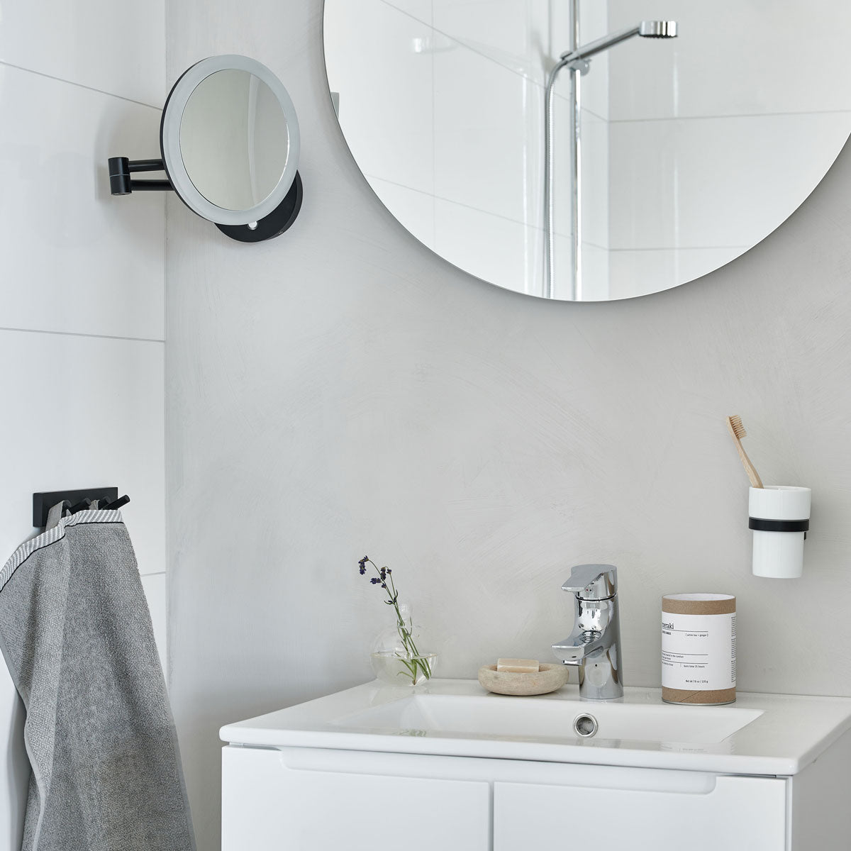 Badrumsserien HOUSE kännetecknas av skandinavisk design med fokus på funktion, hållbarhet och estetik. En rostfri fyrkrok i svart matt som kombinerar modern stil med hög kvalitet – ett elegant och praktiskt val för det samtida badrummet.