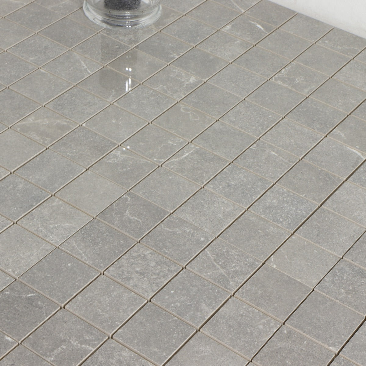 Mosaik Soapstone Gray Blank Marmor är en mosaik av granitkeramik i grått med marmoreringar i ljusare nyanser. En mosaik med lagom mycket marmoreringar och blank yta.