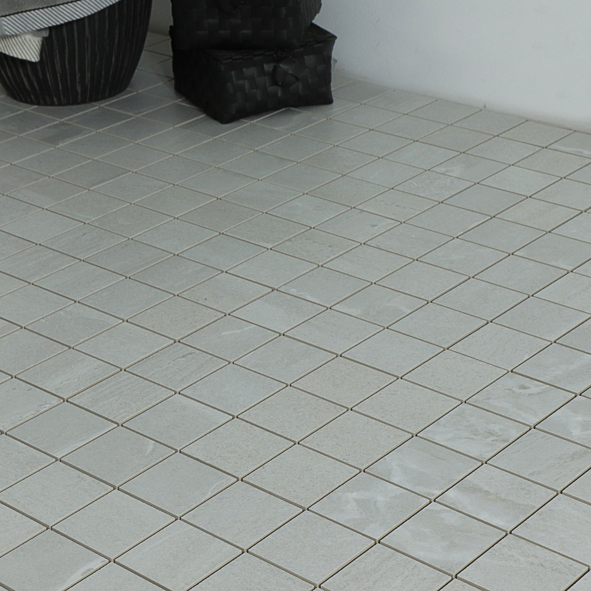 Mosaik Whitehall Ash Blank är en mosaik av granitkeramik i ljust grå nyanser och med blank yta. Serien Whitehall är iögonfallande klinker med kraftfullt mönster. Serien är inspirerad av den berömda Burlington-skiffer som bryts vid de brittiska sjöarna. Designen med detaljerat mönster och subtila, sandiga vener ger en slående yta med dynamisk och lugnande känsla.