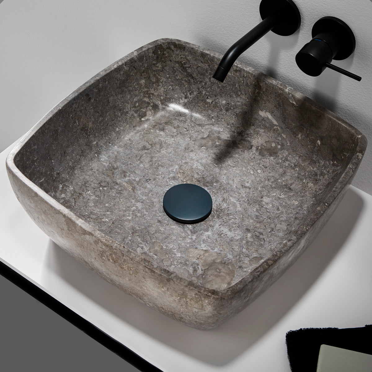 Tvättställ Grafit 40x40x15 cm – exklusivt marmortvättställ i mörk natursten