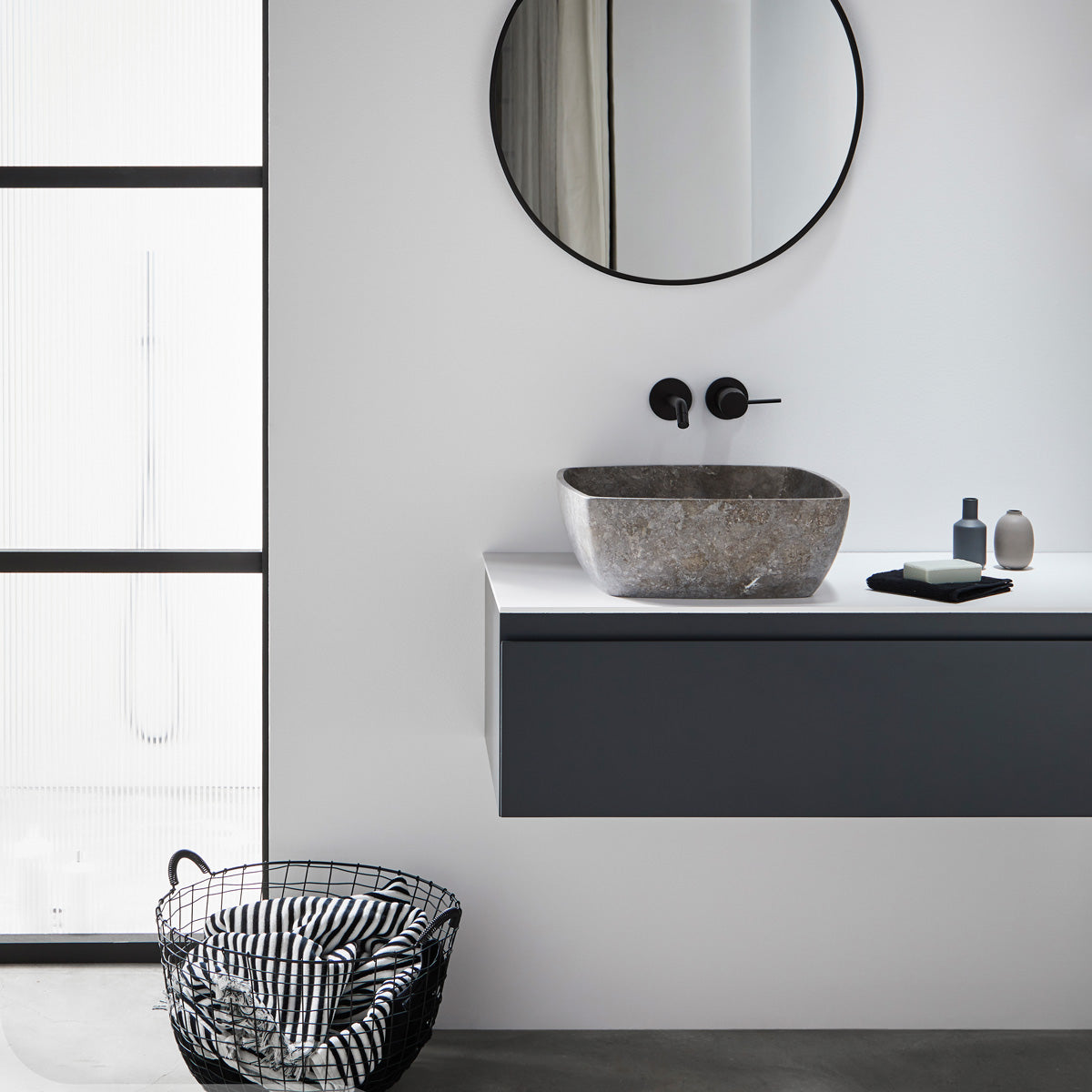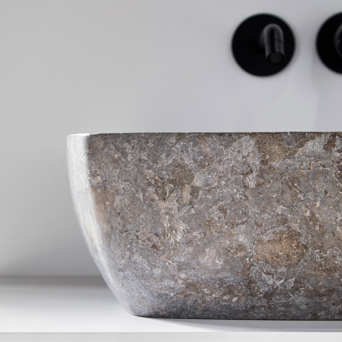 Tvättställ Grafit är ett elegant och modernt tvättställ tillverkat av äkta marmor. Det är utskuret ur massiv natursten med traditionell teknik, vilket ger ett exklusivt och tidlöst uttryck. Den mörka stenytan har en naturlig variation i nyans och struktur som ger badrummet en sofistikerad och harmonisk känsla. Både insidan och utsidan är släta och mattpolerade, vilket framhäver stenens naturliga djup och glans. Ett perfekt val för dig som vill skapa en elegant och hållbar design med genuin känsla av natursten.