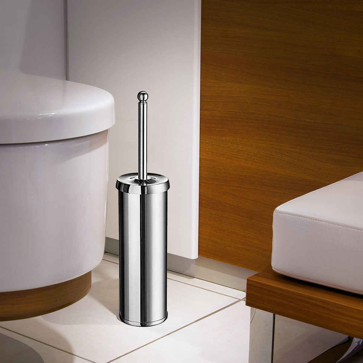 Borsten är fristående och utrustad med en löstagbar inre plastbehållare som gör rengöringen enkel och hygienisk. Tack vare materialet i massiv mässing är WC-borsten helt rostfri och anpassad för badrummets fuktiga miljö. Den tidlösa designen gör att den passar lika bra i klassiska som moderna badrum.