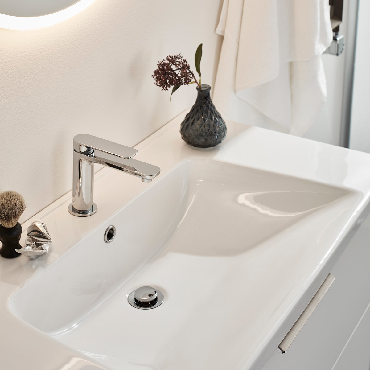 För att minska vattenförbrukningen är blandaren utrustad med en vattenbesparande strålsamlare, vilket gör den till ett miljövänligt val utan att kompromissa med prestanda. Den noggrant testade och SINTEF-certifierade konstruktionen garanterar hög kvalitet och säkerhet, vilket ger trygghet i både användning och hållbarhet. Hafa Slim är den perfekta kombinationen av form och funktion för dig som önskar en tvättställsblandare med genomtänkt design och innovativa egenskaper som passar moderna badrum.