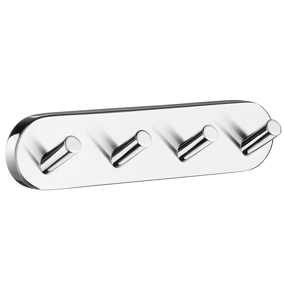 Kroklist, 4 kroker Smedbo HOME i blank krom er en stilren og funksjonell kroklist som kombinerer tidløs design med praktisk oppbevaring. Den blanke kromoverflaten reflekterer lyset og gir baderommet et elegant og moderne preg. Perfekt for håndklær, badekåper eller klær – både på baderommet og i gangen.