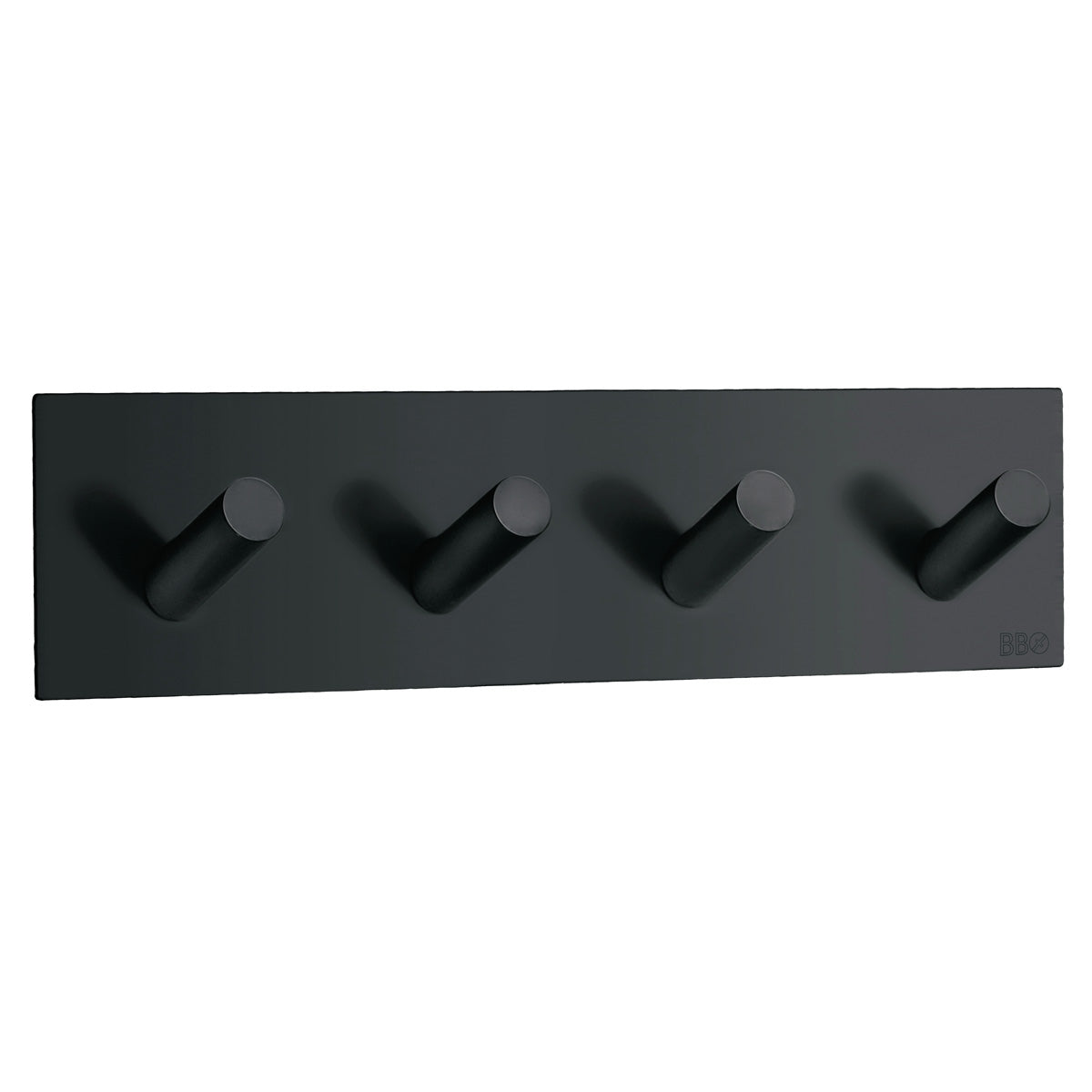 Kroklist, 4 kroker Smedbo i matt svart er en elegant og funksjonell detalj som gir baderommet et moderne og eksklusivt uttrykk. Den kantede bakplaten med rene linjer skaper et stilrent preg, mens den matte, svarte overflaten tilfører dybde og kontrast. En praktisk kroklist med plass til flere håndklær, badekåper eller tilbehør – perfekt for et organisert baderom med sans for design.