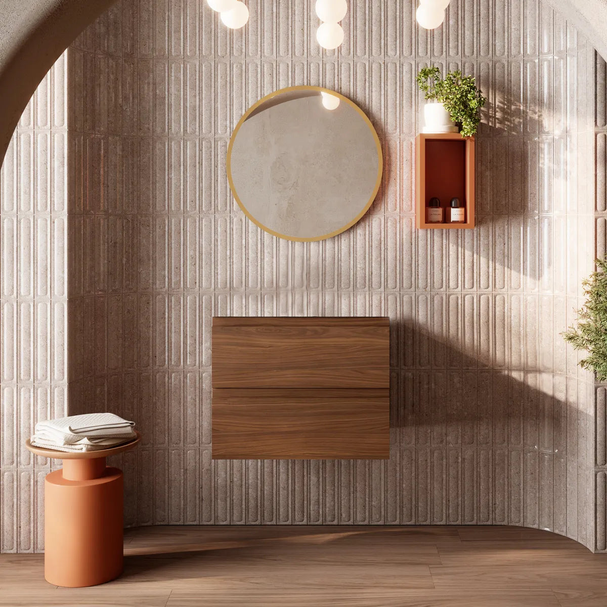 Kommoder i Tenfors Norrvik-serien finns i bredderna 60 cm och 80 cm, vilket ger flexibilitet oavsett badrummets storlek. Med ett djup på 45 cm och en höjd på 48 cm erbjuder de generösa förvaringsutrymmen utan att dominera rummet. De två rymliga lådorna är utrustade med mjukstängande mekanismer och den översta har smarta fack för småförvaring. Tack vare den dolda upphängningen får kommoderna ett modernt, svävande utseende som underlättar rengöring och bidrar till en luftig känsla i rummet.