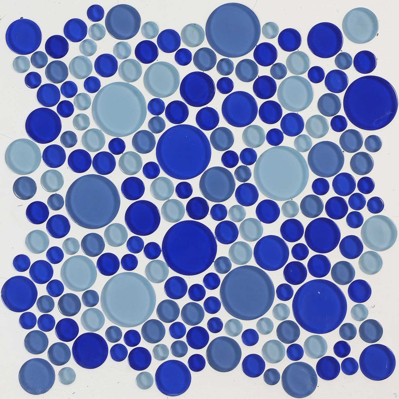 Mosaik Splash Blue är en blank, rund kristallmosaik. En bubblande glad mosaik med lekfull känsla.