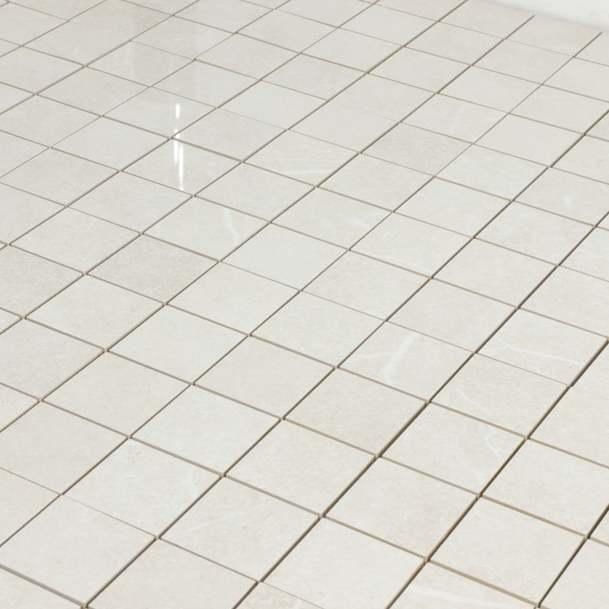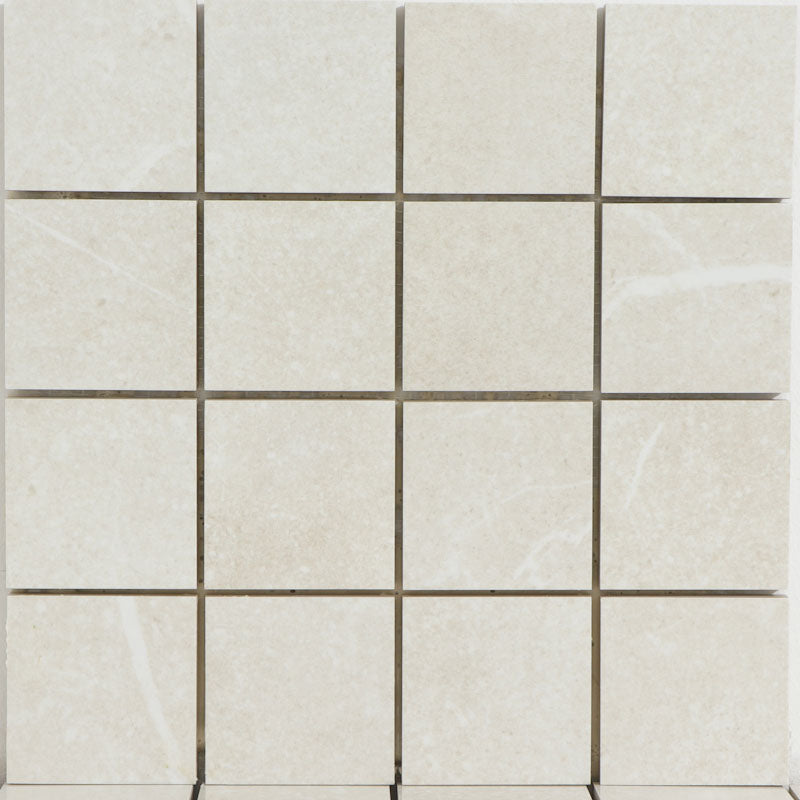 Mosaik Soapstone White Blank Marmor är en mosaik av granitkeramik i beige med marmoreringar i ljusare nyanser. En mosaik med lagom mycket marmoreringar och blank yta.