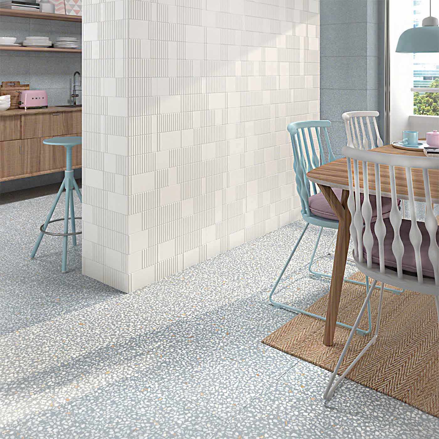 1. Autentisk terrazzo-utseende: Med monokromatiska fragment återskapar Klinker Amalfi känslan av äkta terrazzo utan den höga prislappen.