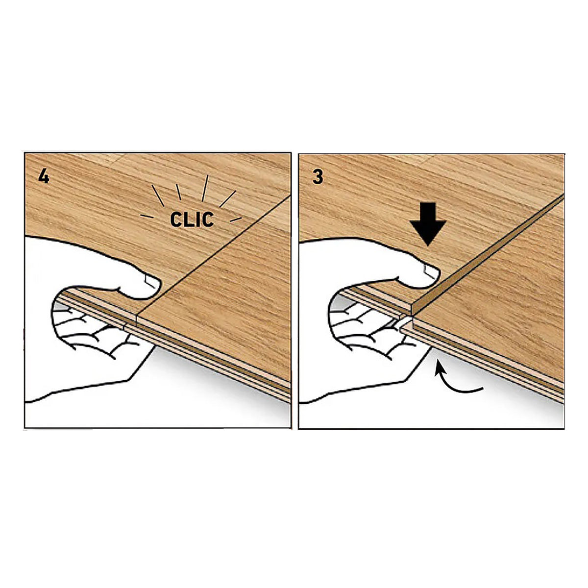 Oak Sedrun är slitstarkt, reptåligt och klassificerat i slitstyrkeklass AC5/33, vilket gör det lämpligt för såväl privata hem som kommersiella utrymmen med hög belastning. Golvet uppfyller brandklass Bfl-s1 och har halkmotstånd DS. Den fyrsidiga fasningen markerar varje planka och ger golvet ett exklusivt och autentiskt helhetsintryck. Tack vare den robusta tjockleken på 10 mm upplevs golvet stabilt och gediget, samtidigt som 5G Clic-systemet gör läggningen snabb, säker och limfri.