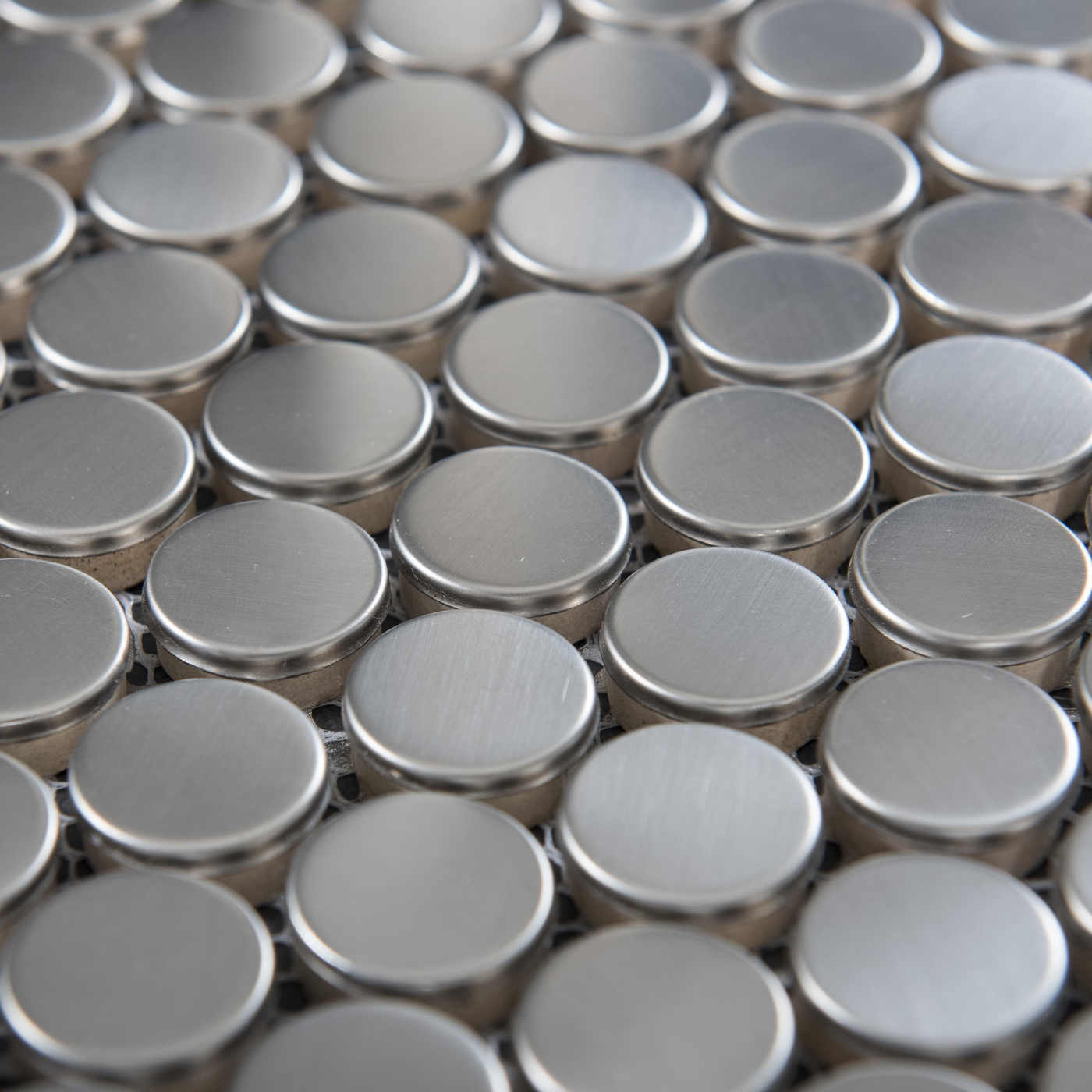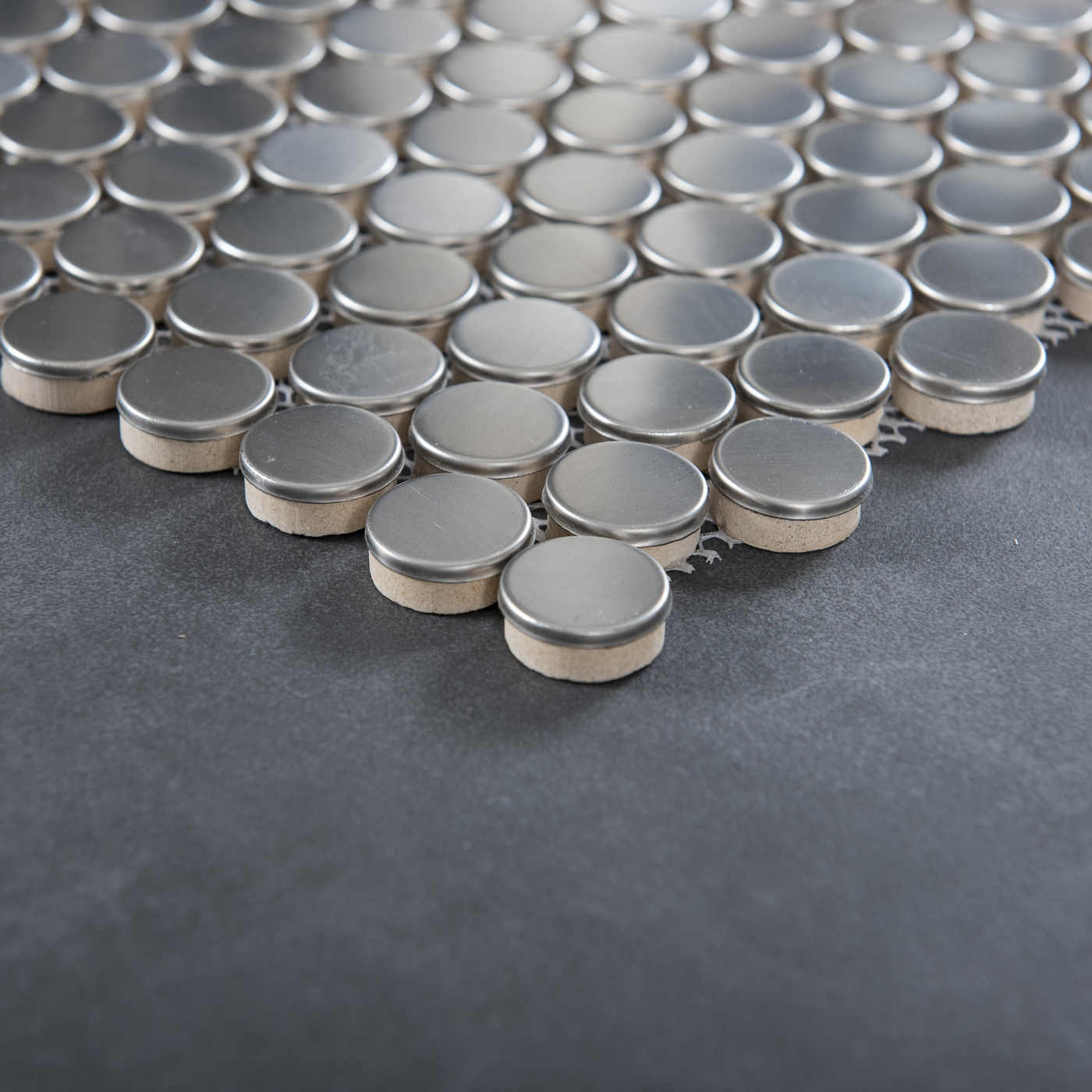 Mosaik Penny Alu är en exklusiv och elegant mosaik av aluminium. En metallmosaik som kan användas i både kök och badrum, dock inte i direkta våtutrymmen (oxidering då aluminium och vatten reagerar).