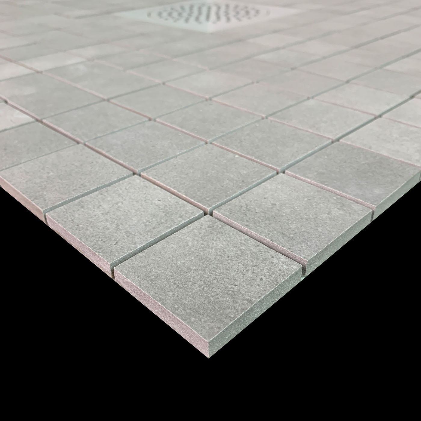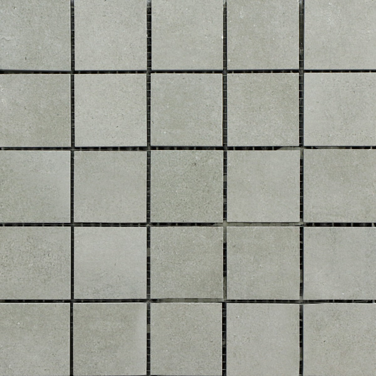 Mosaik Town Grey 25x25 är en matt, glaserad mosaik av granitkeramik i grå nyanser. Matt, mjuk yta och modern känsla. Ytan är inte helt slät, utan mjukt varierande vilket ger en levande, mer naturlig känsla. Varje mosaik mäter 47x47 mm och sitter monterad på pvc-nät för att underlätta montering.