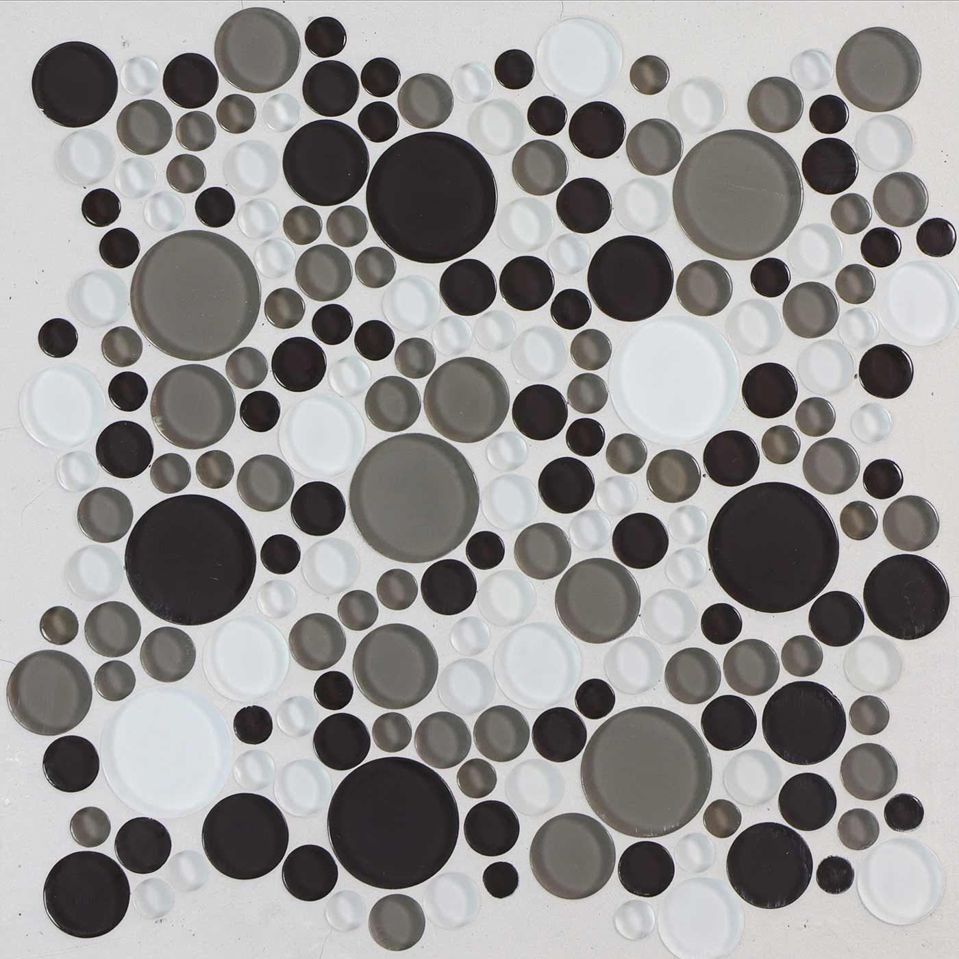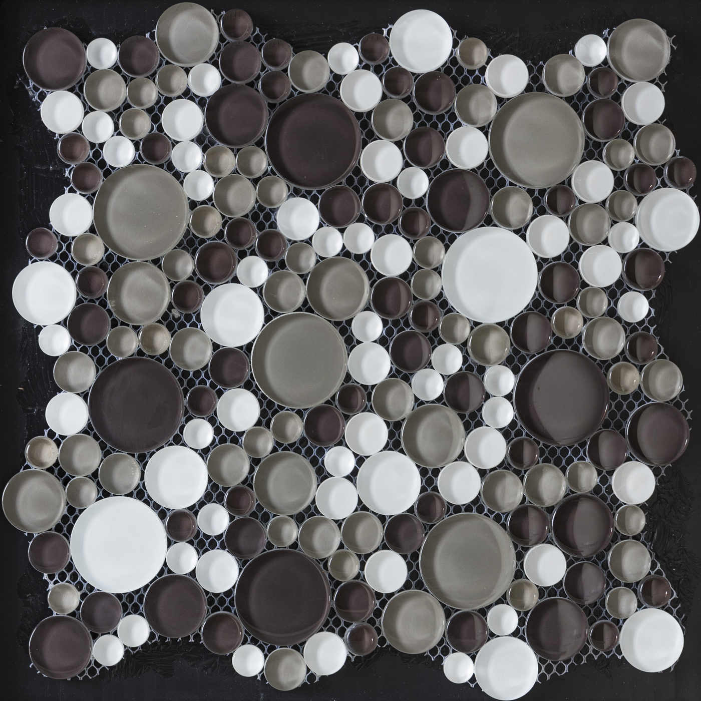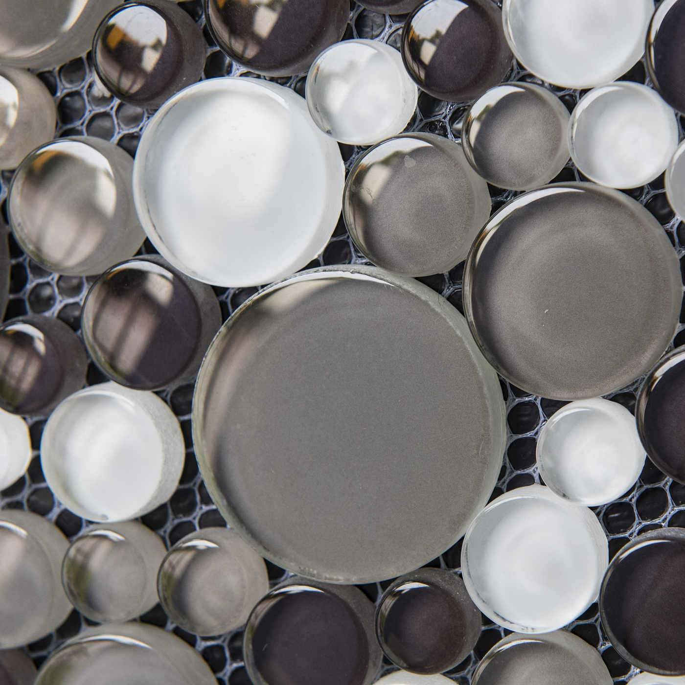 Mosaik Splash Grey är en blank, rund kristallmosaik. En bubblande glad mosaik med lekfull känsla.