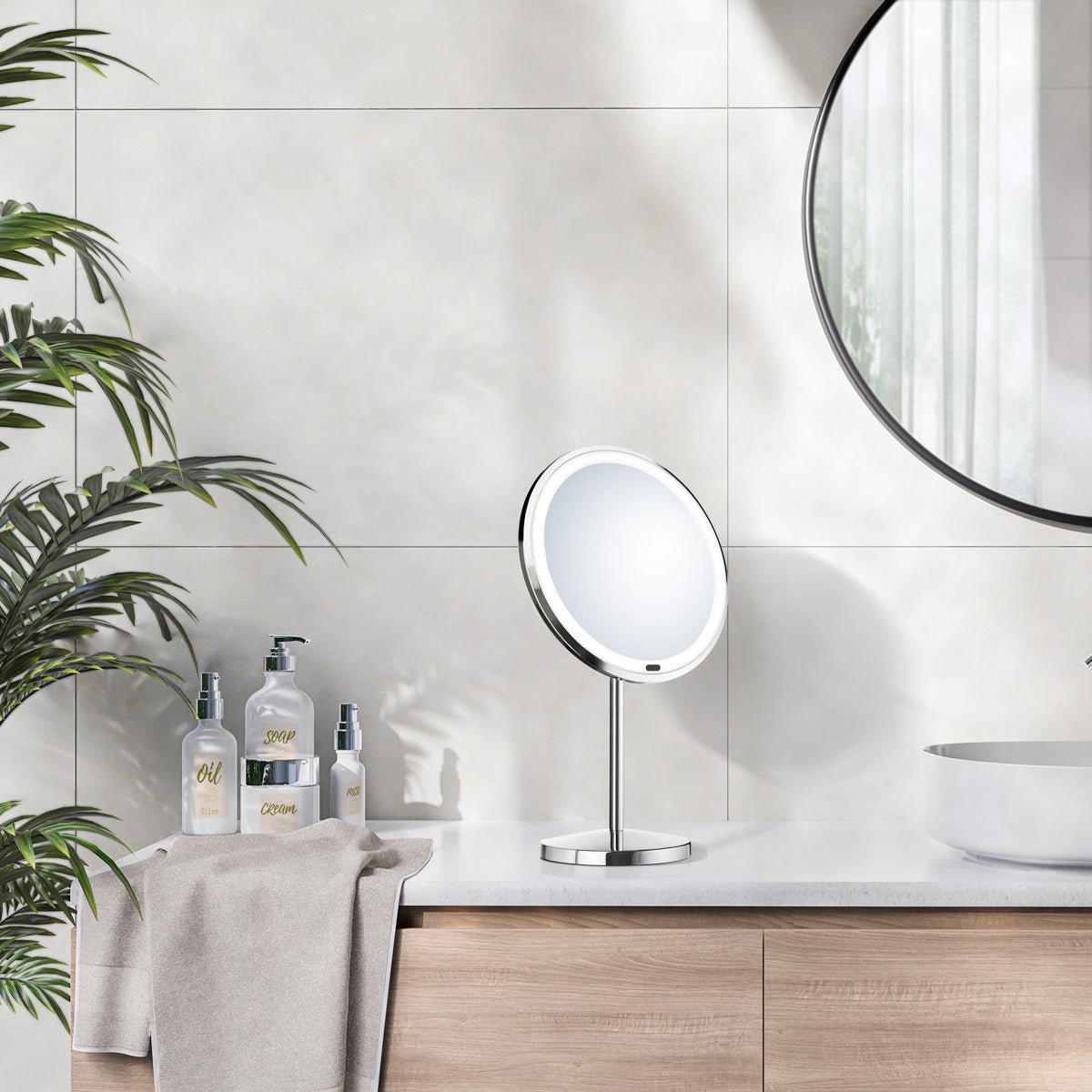 Sminkespeil Smedbo Glow Frittstående LED Krom Polert – elegant speil med belysning og forstørrelse