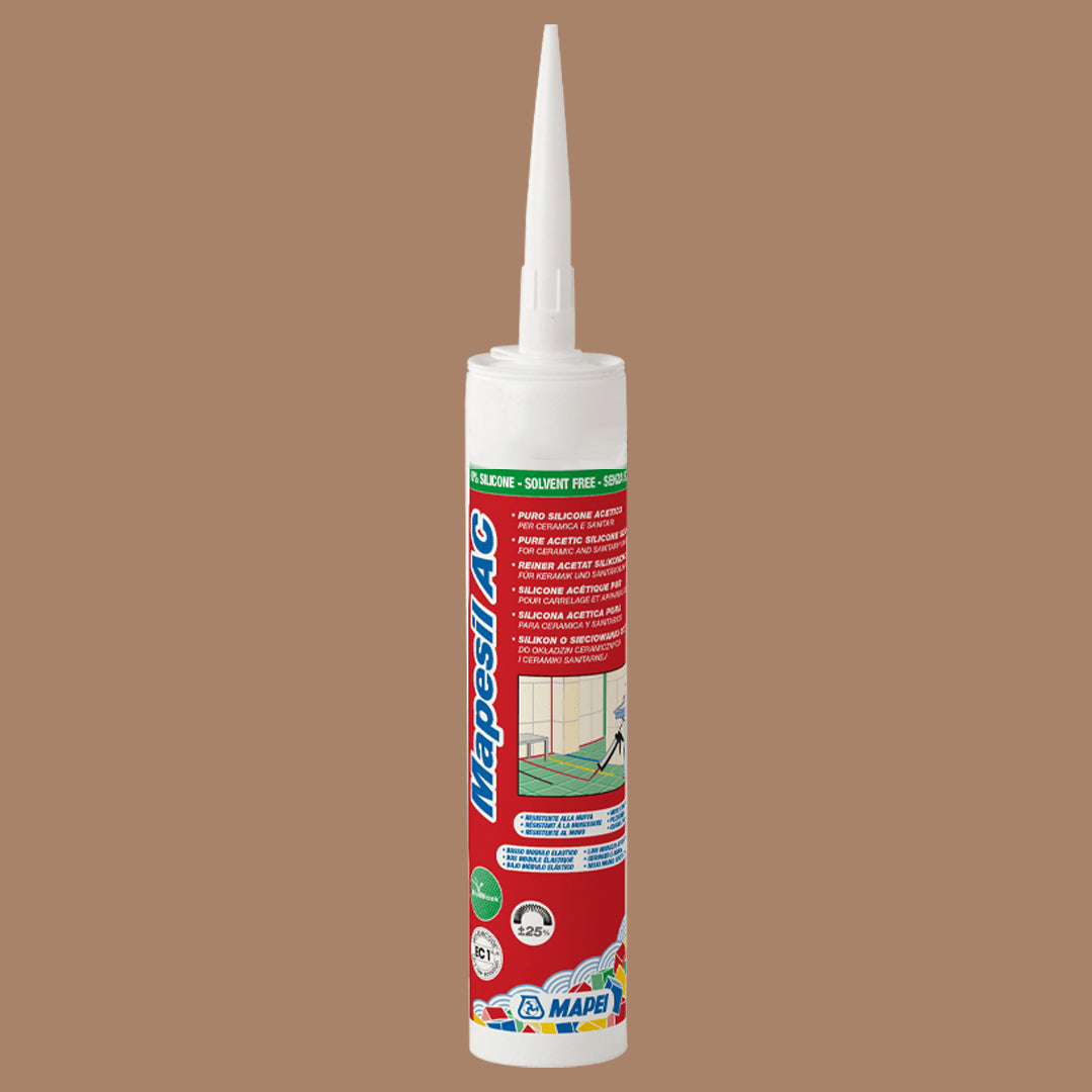 Mapesil AC Siliconfugemasse 141 Caramel er en beige, løsemiddelfri, ren acetatbasert, silikonfugemasse som brukes til fuging av glass, keramikk og anodisert aluminium.
