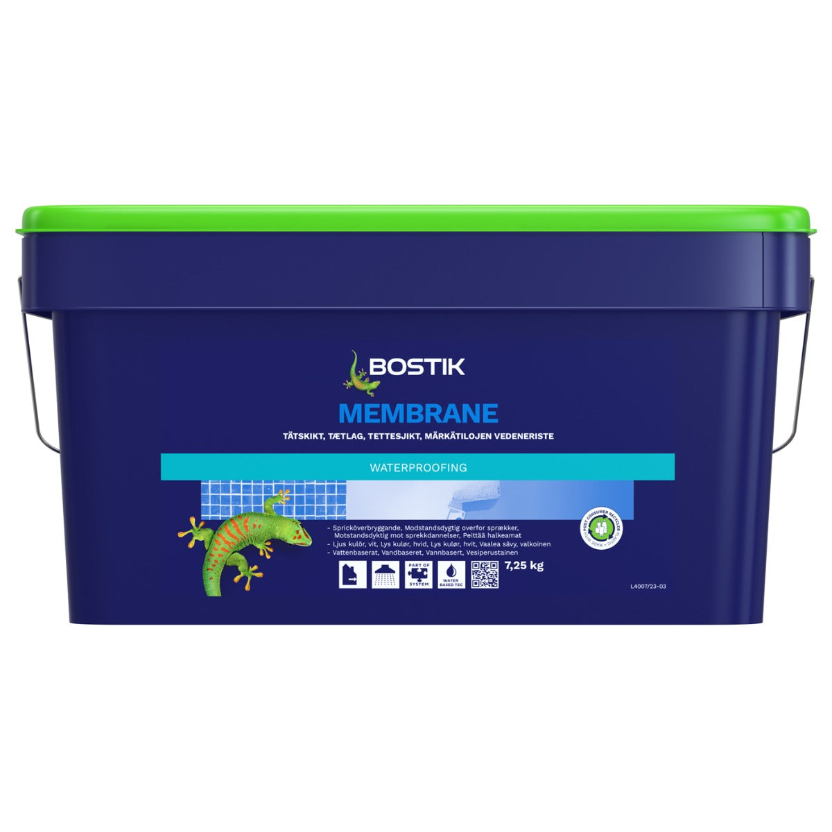 Tätskikt Bostik Membrane för fukt- och vattentätning av golv och väggar i våtutrymme samt för montering av tätskiktsfolie. Dispersionsbaserad tjockflytande membranmassa för fukt- och vattentätning före montering av keramiska material etc. Godkänd för keramiska våtrumskonstruktioner enligt BBV:s branschregler 10:1.