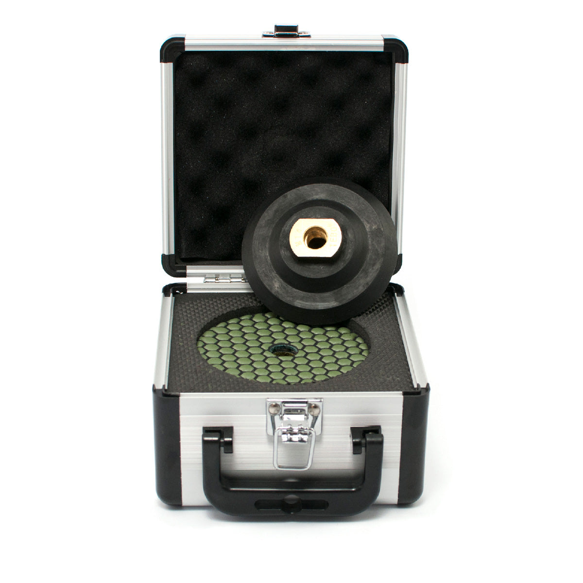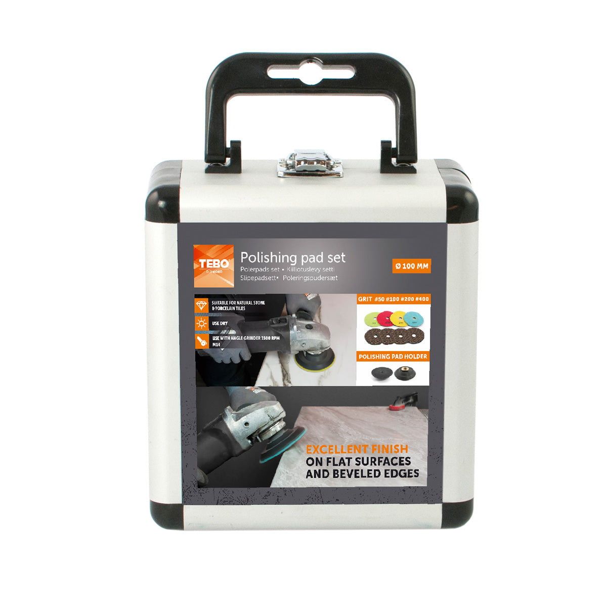 Polerpadsset för torrpolering. Används för att polera kant och ovansida på granitkeramik och natursten. Fästs med kardborre på Polerpadshållare.