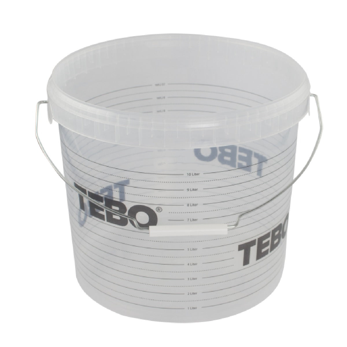 Rund transparent hink av polypropen med tydlig litergradering. 3,2 mm bygelhandtag i galvaniserat stål med plastgrepp. Livsmedelsklassad.
