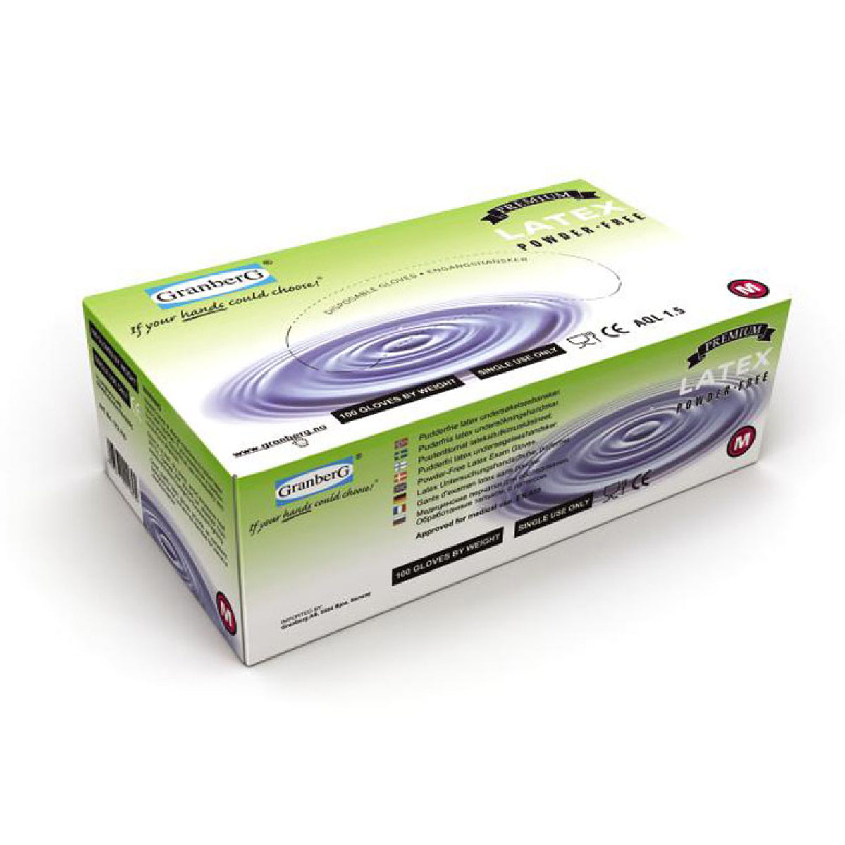 Puderfri engångshandske av latex. Färg: off-white. Ruggad ytstruktur för bättre greppförmåga.
