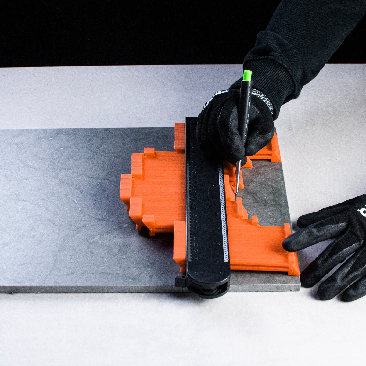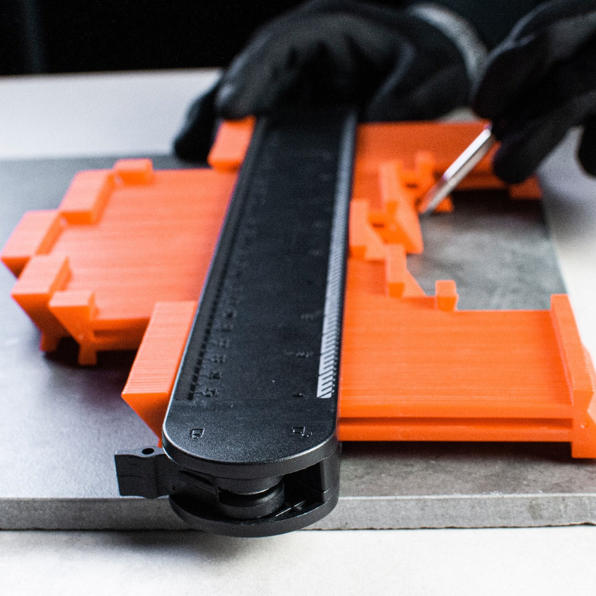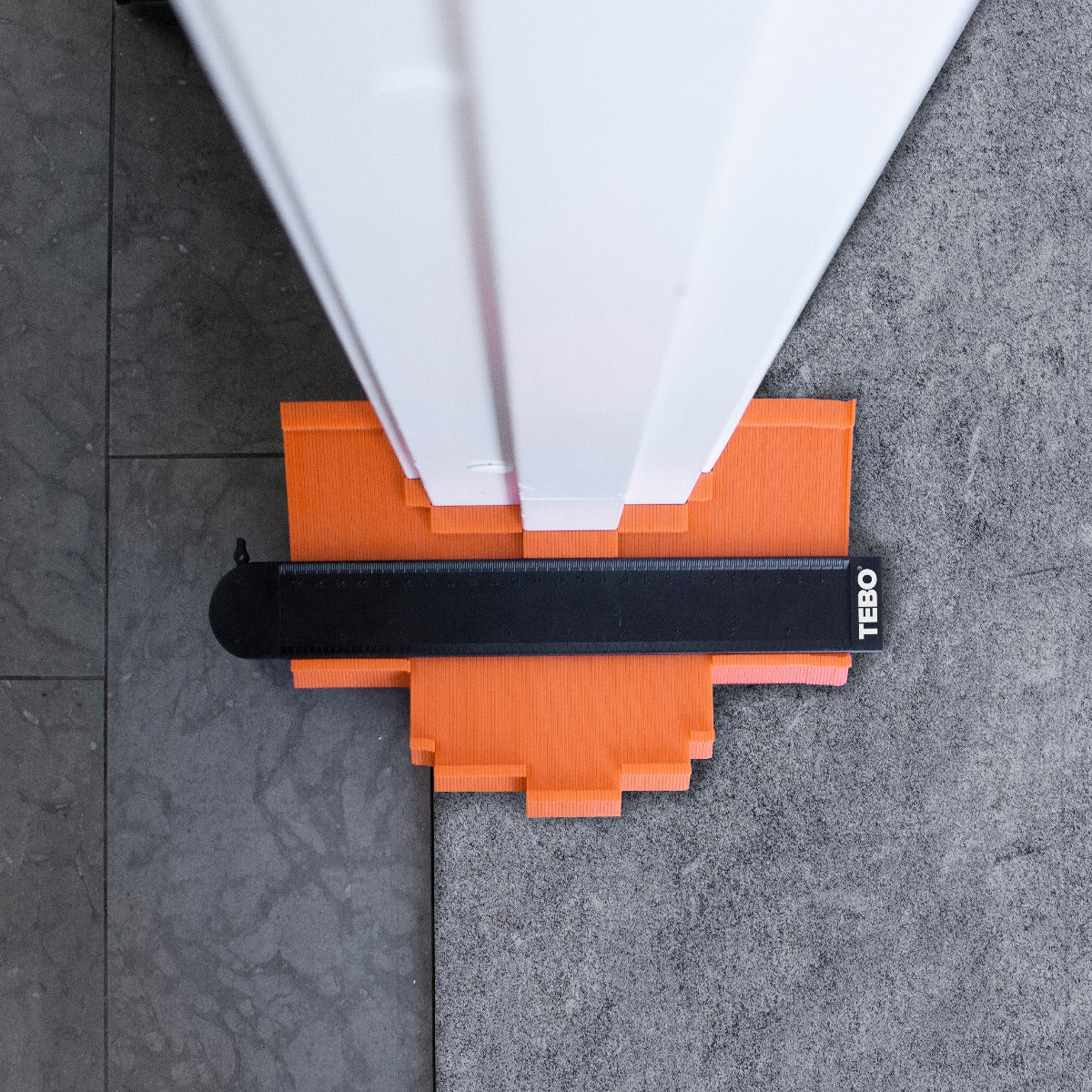 Kontur-/Profilmall Tebo 250/60 mm är en låsbar mall för uppmätning och överföring av konturer och hörn.