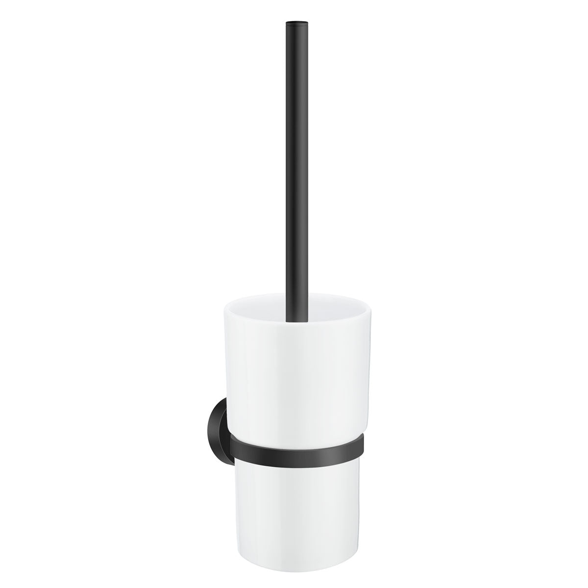 WC-børste Smedbo HOME Svart Matt – veggmontert toalettbørste med porselensbeholder