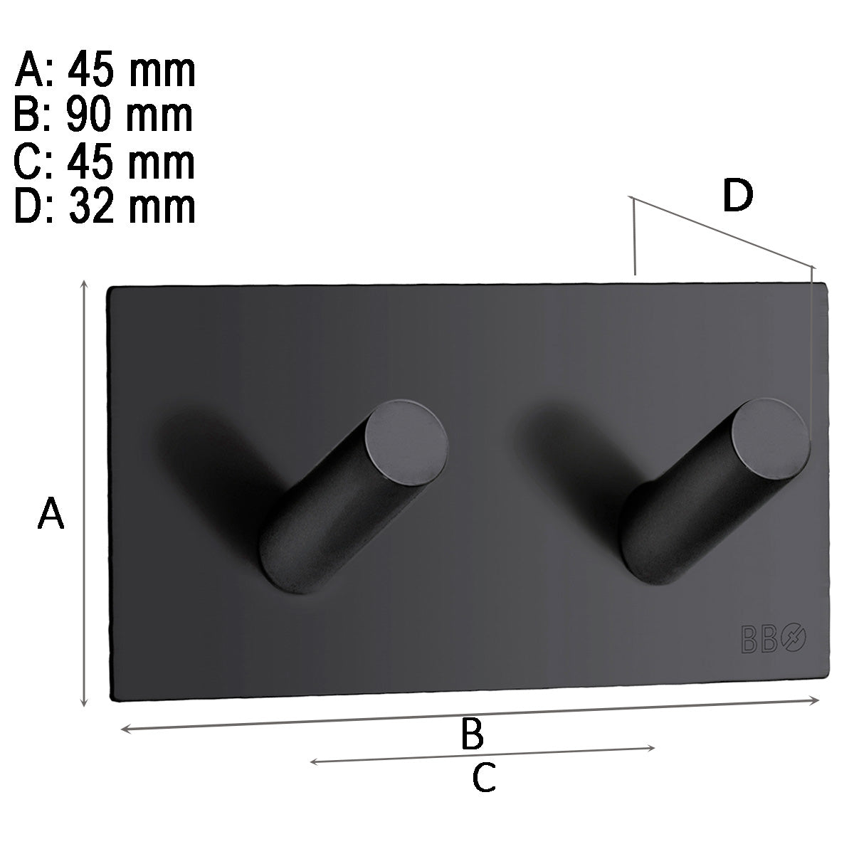 Dobbel krok Smedbo Selvheftende Kantet Svart Matt – stilren krok uten boring