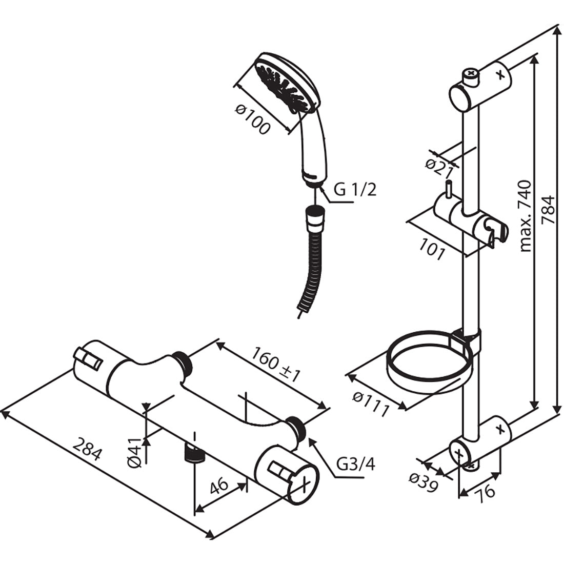 Detta duschpaket levereras med: