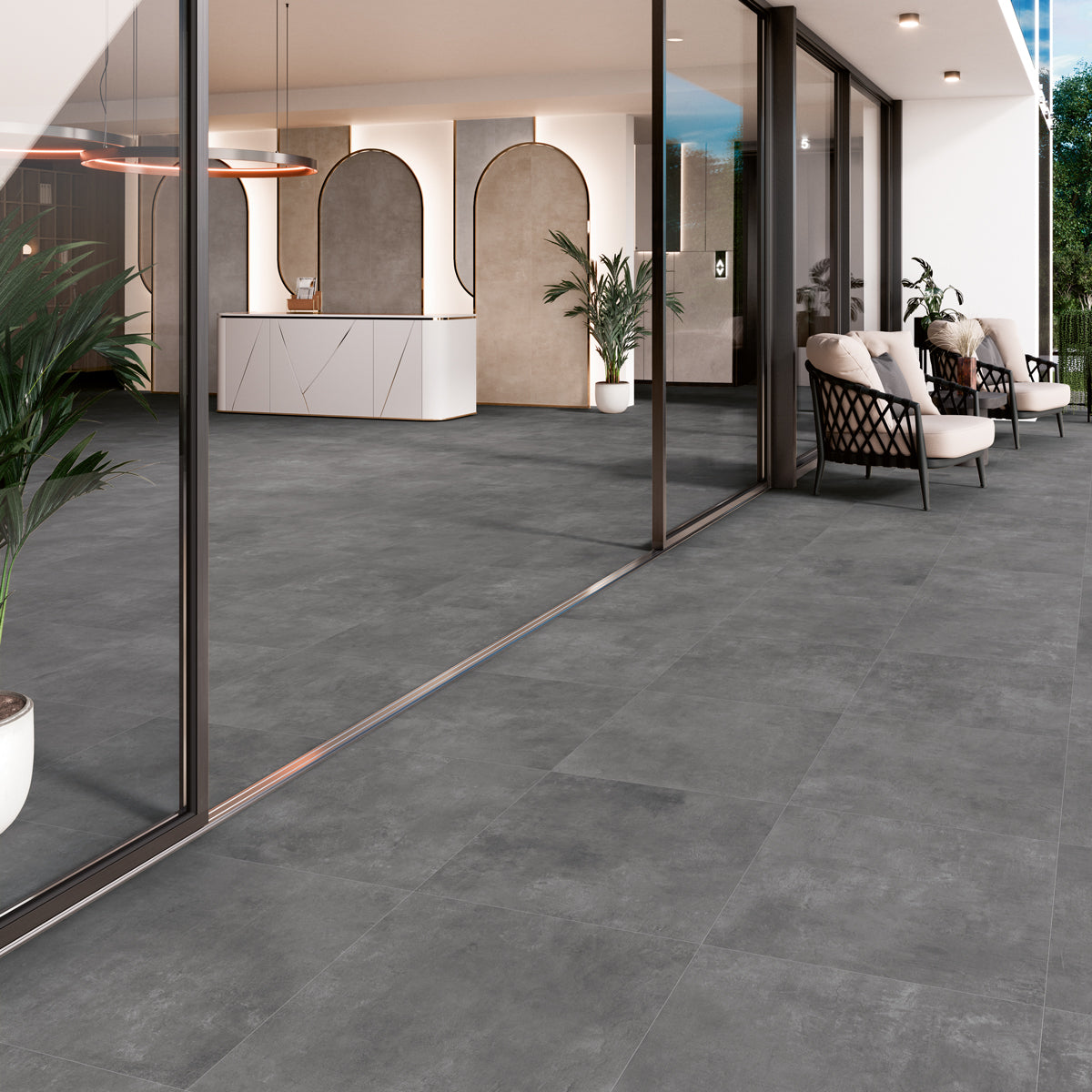 Klinker Indeed är inte bara praktisk utan också elegant och sofistikerad. Med en cementeffekt som perfekt tolkar den samtida minimalistiska trenden, erbjuder den en solid närvaro, en kalibrerad essentialitet och en studerad kromatik. Det diskreta och mångsidiga konceptet passar perfekt för kontinuerliga sammanhängande utrymmen, både inomhus och utomhus, och kompletterar perfekt den moderna livsstilen.