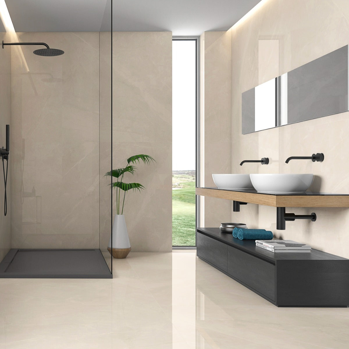 - Badrum: Den vattentäta och hållbara naturen hos granitkeramik gör Magda till ett perfekt val för badrum. De eleganta marmormönstren skapar en lyxig spa-känsla, medan den mer halksäkra, matta ytan bidrar till säkerheten.
