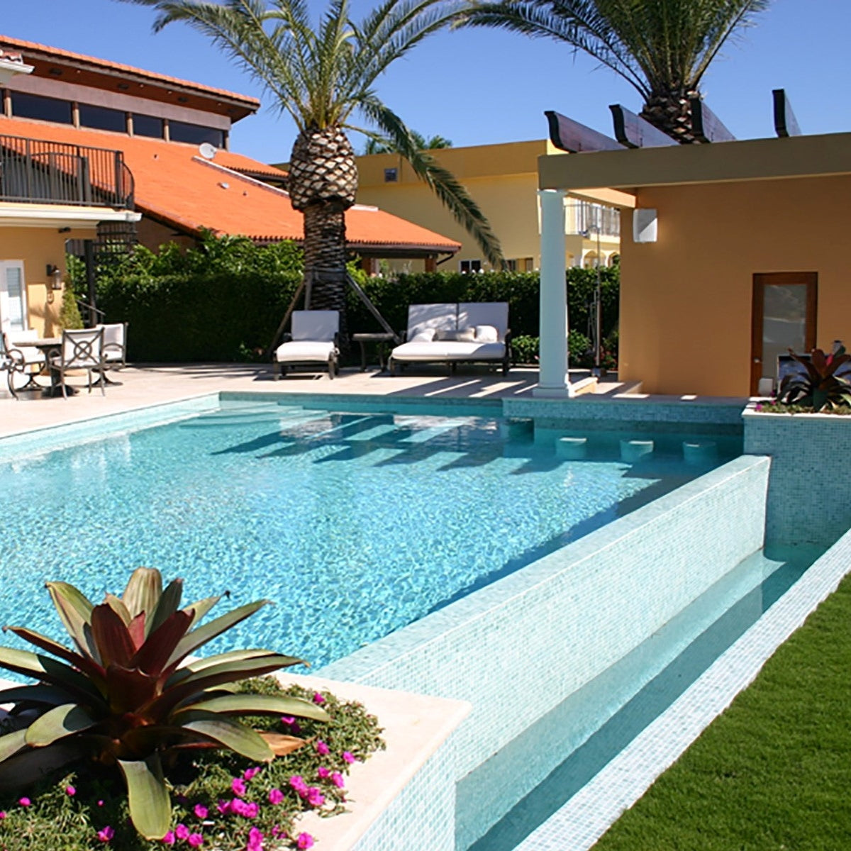 Poolmosaik är ett självklart val i pool och områden runt poolen, men kan också anändas i badrum, kök eller andra områden. Mosaiken är frostsäker och tål golvvärme.