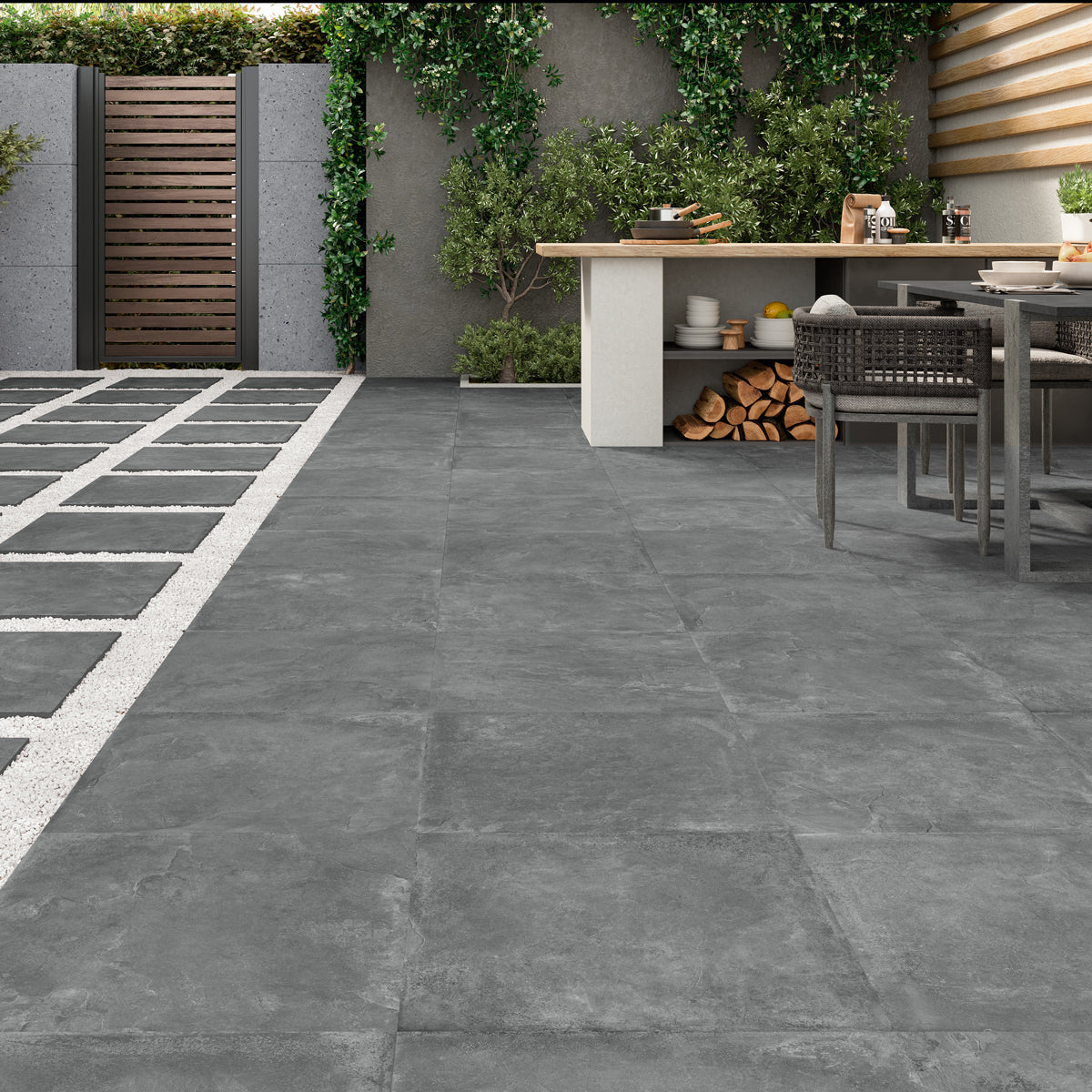 Uteklinker Merlot är en granitkeramik inspirerad av den naturliga karaktären hos skiffer. Med textur och kalibrerad ådring integrerat med dynamisk yta skapar Merlot en miljö med djup estetik och stor uttryckskraft. De balanserade nyanserna ger en elegant bakgrundslösning för att dekorera alla utrymmen och förmedlar personlighet, balans och välbefinnande.