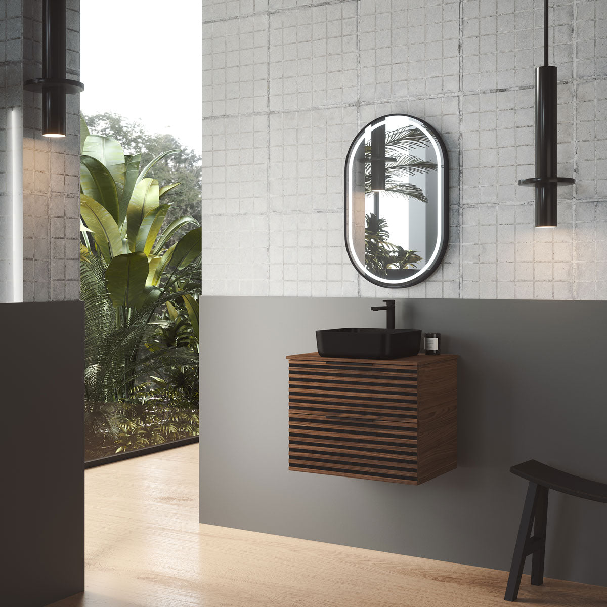 Tenfors bänkskiva i storleken 60x45 cm i valnöt är ett elegant val för mindre badrum eller gästtoaletter. Valnötsutförandet ger ett djupare, mer exklusivt uttryck och skapar en fin kontrast mot ljusa väggar, porslin och metall detaljer, samtidigt som du får en praktisk avställningsyta.