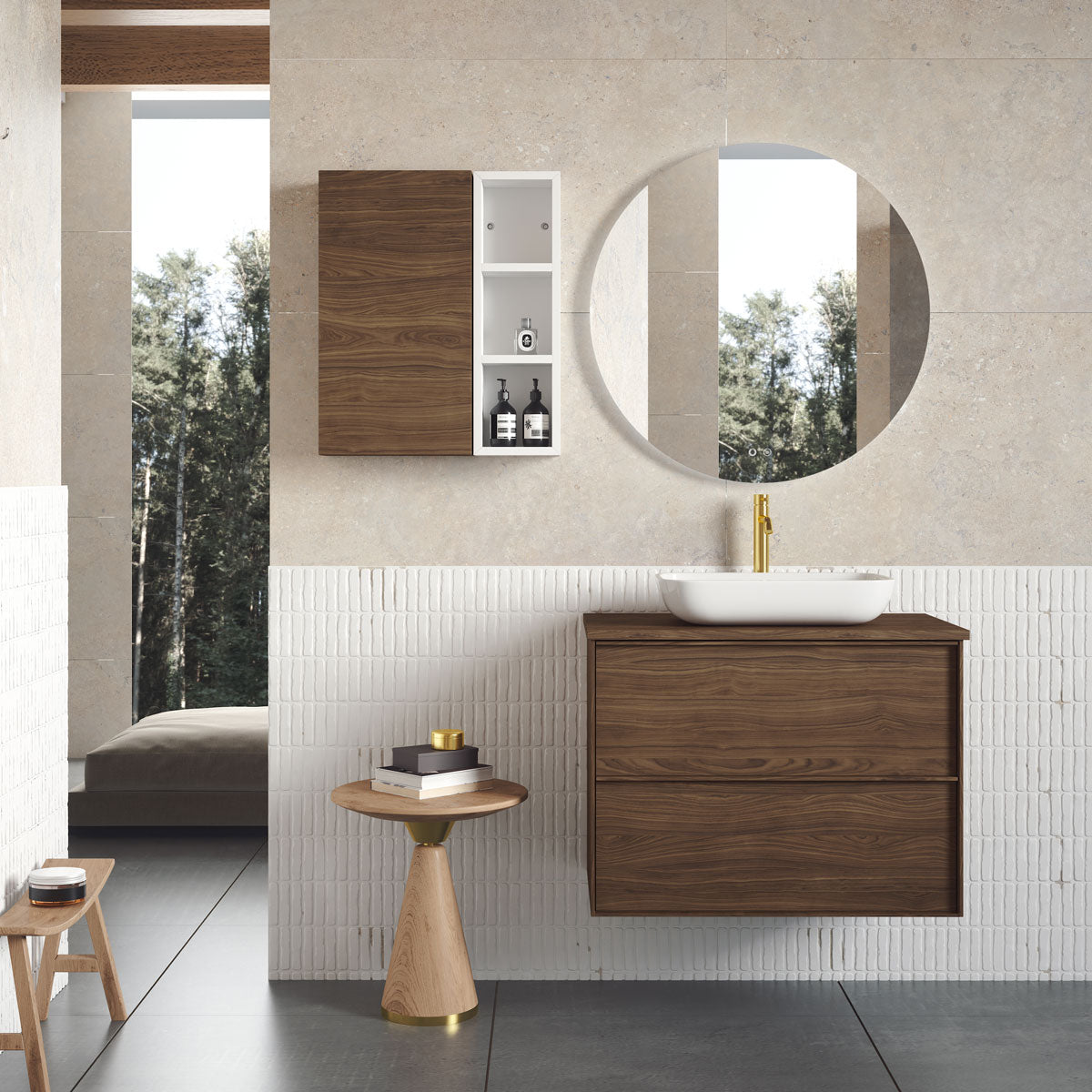 Tenfors bänkskiva i storleken 80x45 cm i valnöt ger en generös och lättskött bänkyta med en varm, exklusiv känsla. Valnötstonen lyfter helhetsintrycket och passar särskilt bra i badrum där du vill kombinera träkänsla med moderna material som sten, betong och vitt porslin.