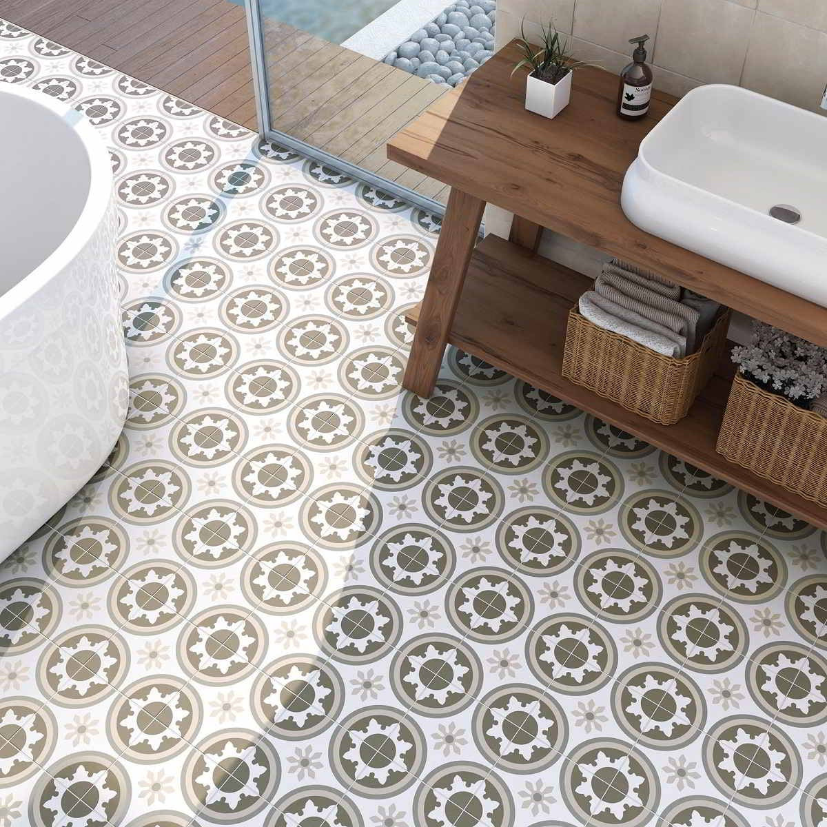 Klinker Basil 20x20 är en tidlös och elegant granitkeramik. Klinker Basil 20x20 erbjuder en perfekt balans mellan stil och styrka, med en förförisk marockansk känsla som förhöjer atmosfären i varje utrymme. Denna mönstrade granitkeramik fångar ögat med sin kombination av vitt, gråblått, beige och brunt, och ger rummet en aura av förfinad charm och exotiskt mystik.