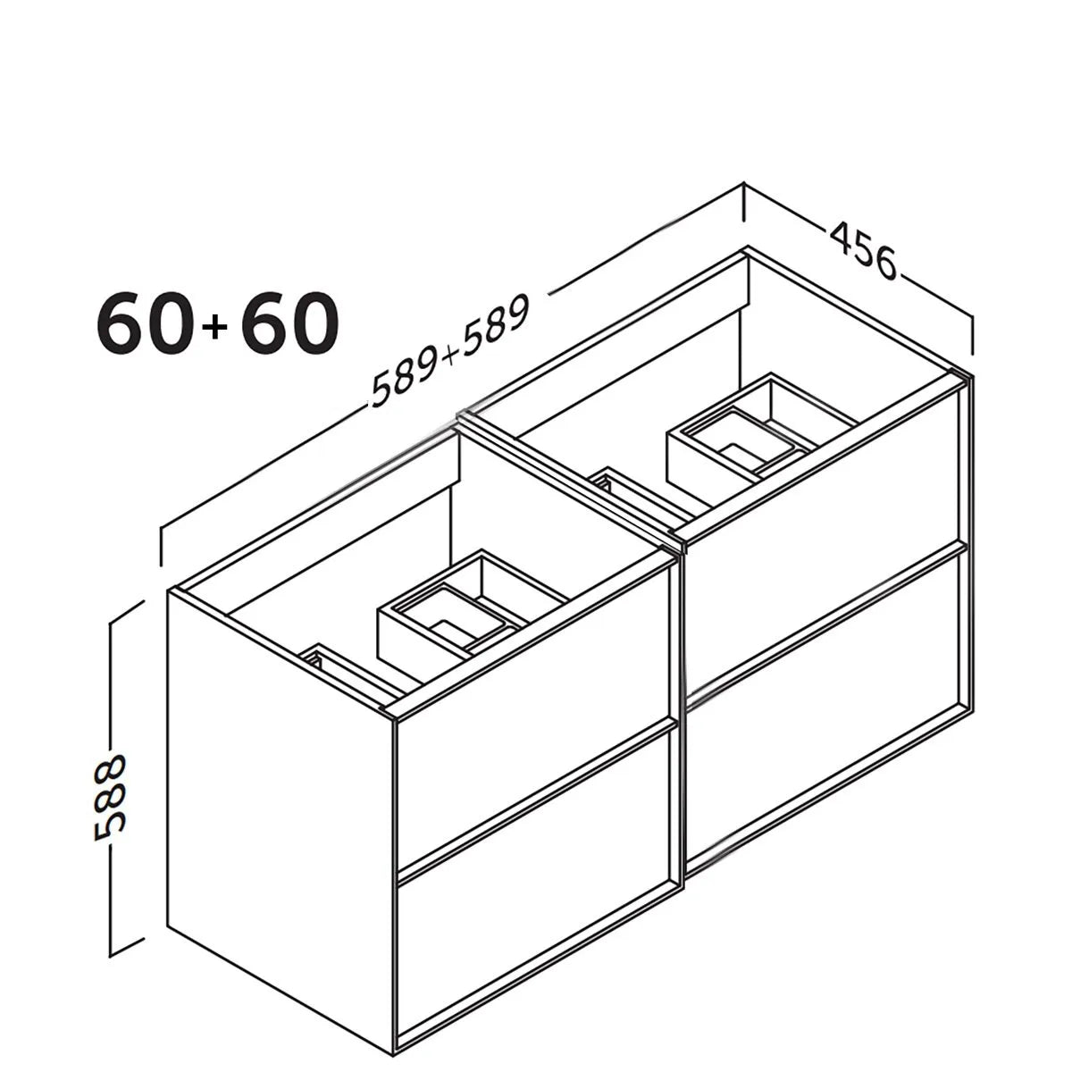 För dig som vill ha en ännu mer flexibel lösning går det dessutom att kombinera två 60 cm kommoder för att skapa en möbel på 120 cm, som kan kombineras med våra dubbla tvättställ på 120 cm. Detta ger inte bara ett elegant och enhetligt utseende, utan också fyra separata lådor vilket gör det enklare att organisera dina tillhörigheter.