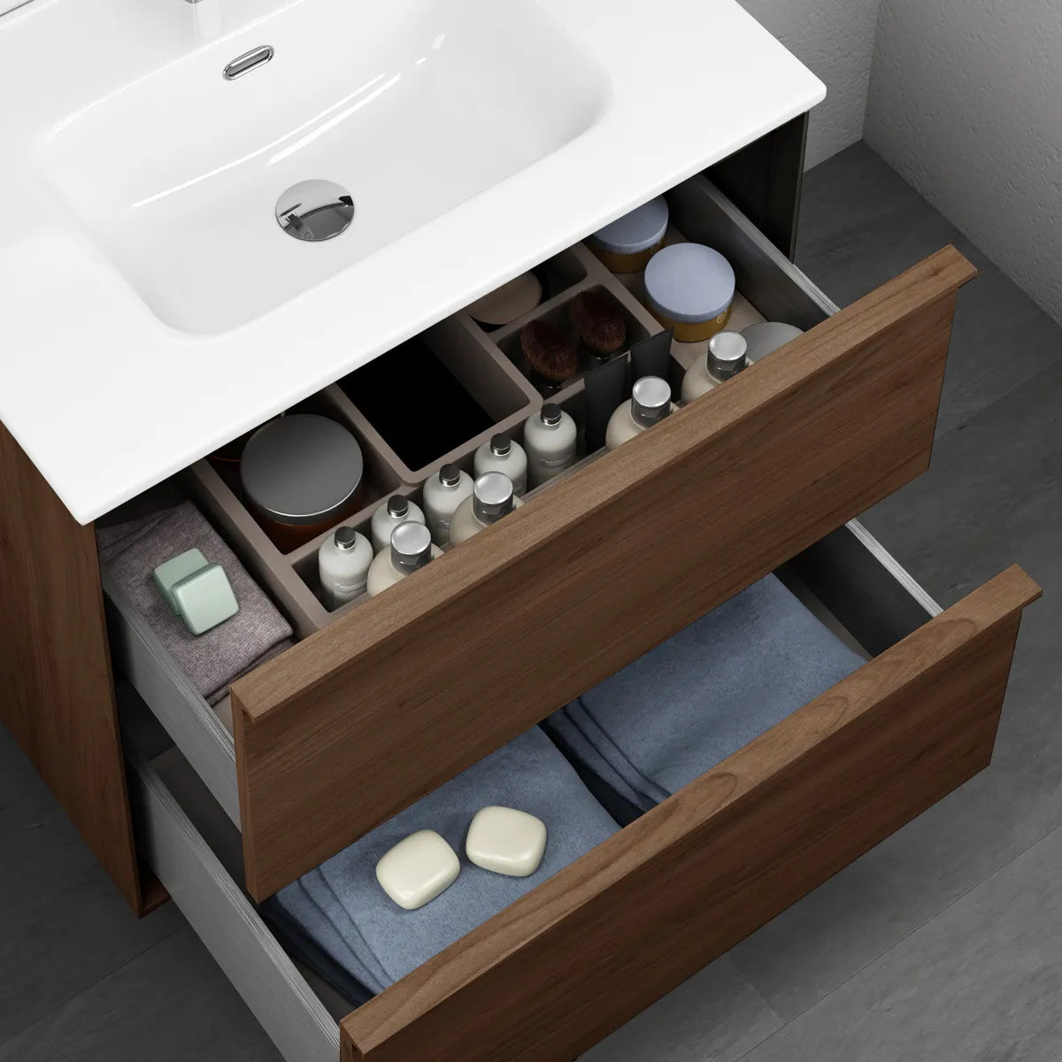 Kommoden levereras utan tvättställ, vilket gör det till en flexibel lösning då man kan välja mellan flera olika tvättställ som passar just ditt badrum, och din livsstil.