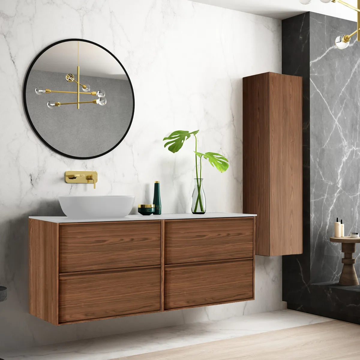 Oavsett om du väljer en ljus och naturlig ekfinish, slätlackerad yta eller en mörkare och sofistikerad valnötsfinish, erbjuder Tenfors Nordlig en perfekt balans mellan praktiska lösningar och stilren design. Serien är idealisk för dig som söker en elegant och genomtänkt möbelserie som lyfter ditt badrum till nya nivåer av funktionalitet och estetik.
