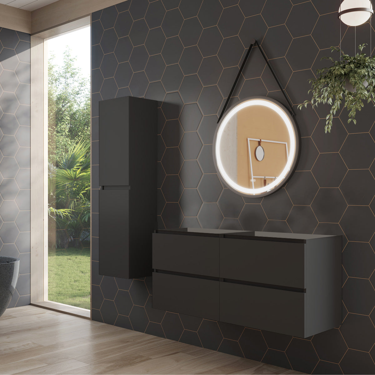 Kommoder och högskåp i serien är utrustade med mjukstängande mekanismer för lådor och dörrar, vilket både ökar användarkomforten och skyddar möblerna från onödigt slitage. Högskåpets dörrar är dessutom vändbara, vilket gör det möjligt att anpassa öppningsriktningen efter ditt badrums layout. Glashyllor i högskåpet ger en elegant och praktisk förvaringslösning, medan den handtagsfria designen skapar ett rent och modernt uttryck.