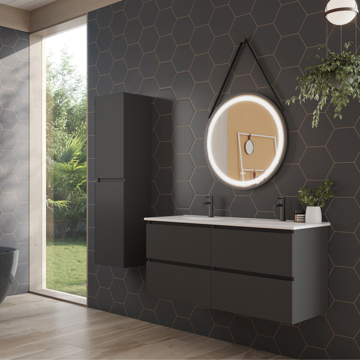 Möblerna i Viken-serien finns i tidlösa färger – Vit Matt, Svart Matt och Grå Matt. Den matta finishen ger ett sofistikerat och modernt uttryck samtidigt som ytan är lätt att rengöra och underhålla. Färgerna är noggrant utvalda för att harmoniera med olika badrumsstilar och färgscheman, vilket gör det enkelt att integrera möblerna i din inredning.