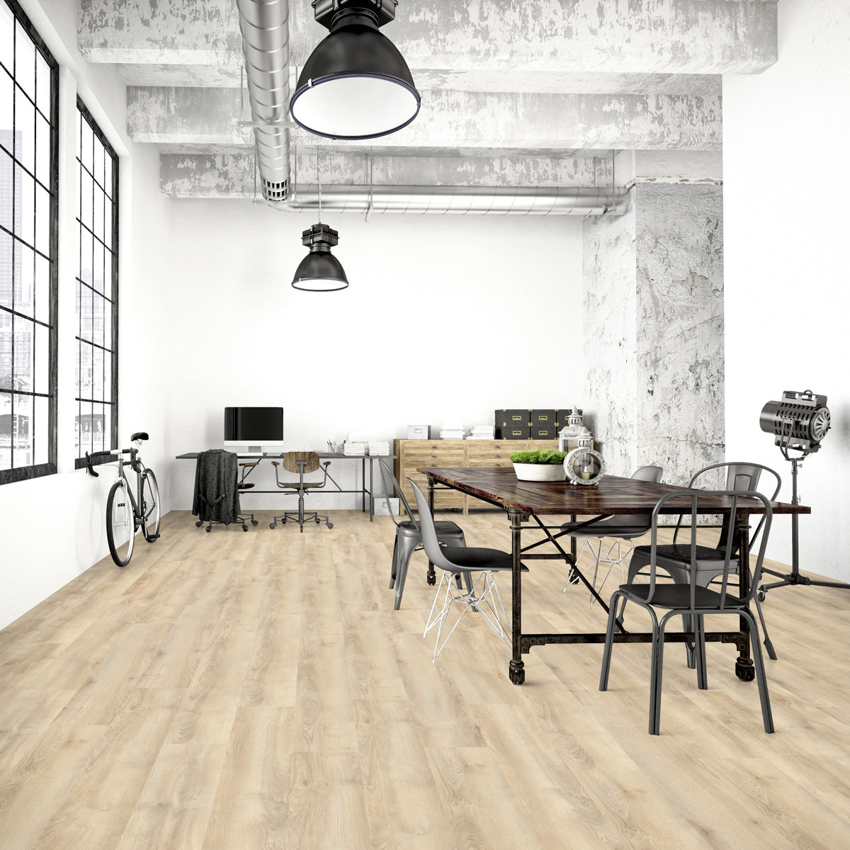 Den matta och silkeslena ytan med moderat relief ger golvet ett mjukt och sofistikerat uttryck. Embossed-in-Register-teknologin gör att struktur och ådring följer varandra exakt, vilket skapar en autentisk och taktil känsla av äkta trä. Golvet är lätt att rengöra, motverkar statisk laddning och kräver minimalt underhåll.