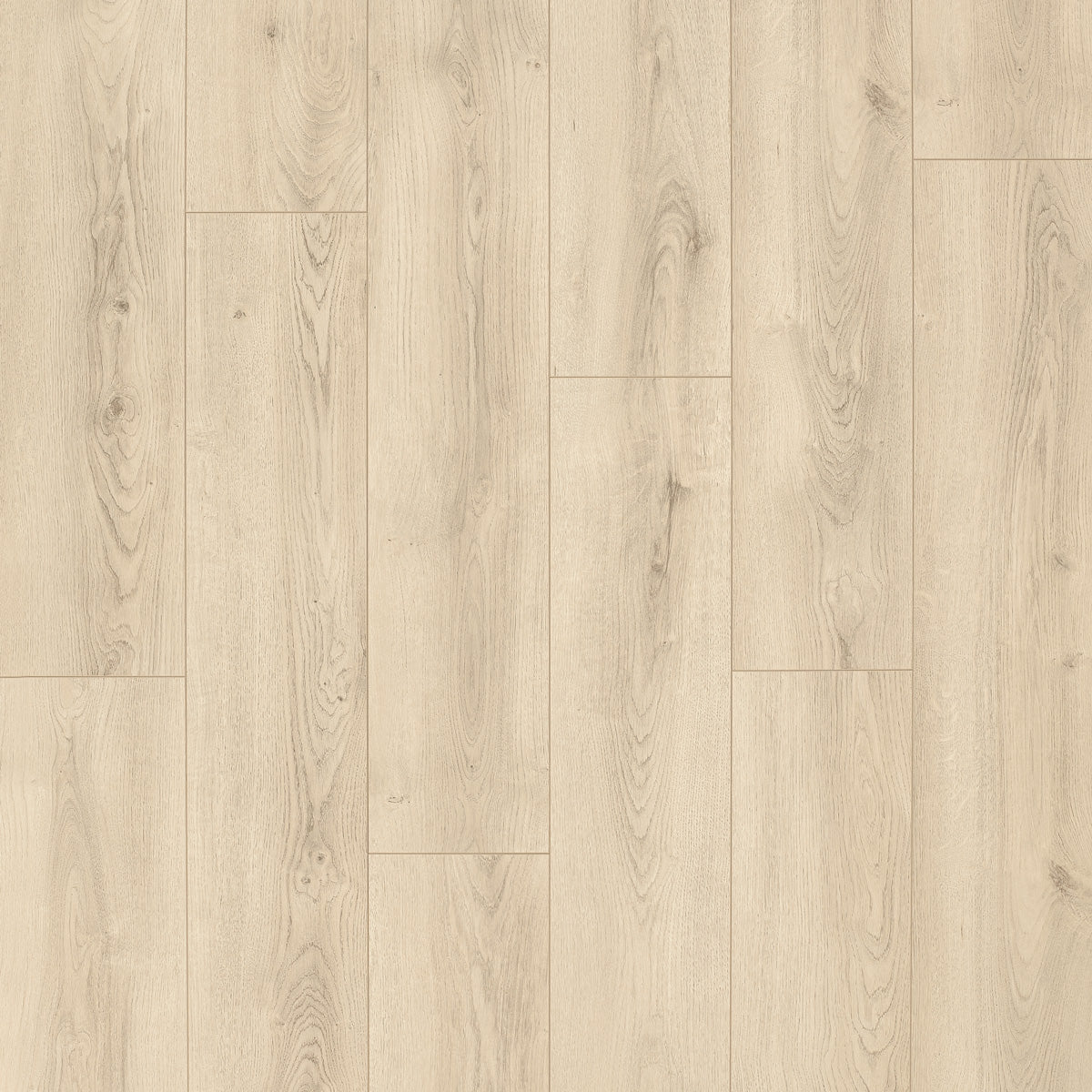 Laminatgolv Oak Beige 8 mm har en mjukt varm och ljus ekton som skapar ett lugnt och luftigt intryck i rummet. Den subtila ådringen och de diskreta kvistmarkeringarna förstärker golvets naturliga karaktär – perfekt för dig som söker en tidlös, skandinavisk stil. Ytan har en silkeslen, matt finish med tydlig men harmoniskt dämpad trätextur. Detta ger golvet ett mjukt och behagligt uttryck samtidigt som strukturen ger ett naturtroget djup.