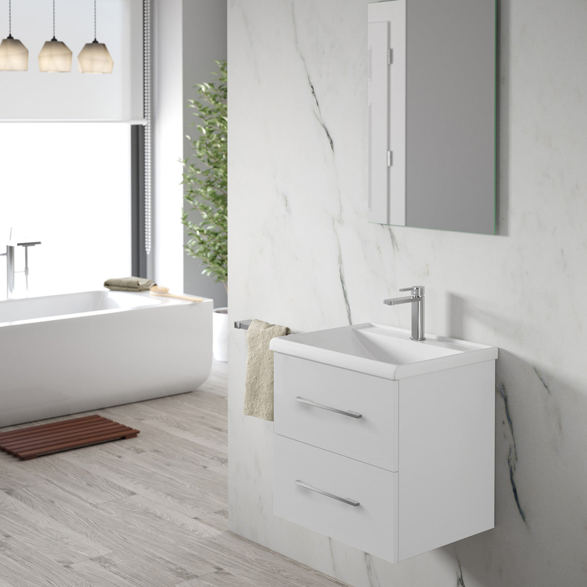 Tenfors Linnea kombinerar skandinavisk minimalism med praktisk funktionalitet. Den matta vita finishen skapar en lugn och harmonisk känsla, samtidigt som de raka linjerna ger möbeln ett modernt uttryck. Porslinstvättstället är slitstarkt, hygieniskt och enkelt att rengöra – idealiskt för daglig användning.